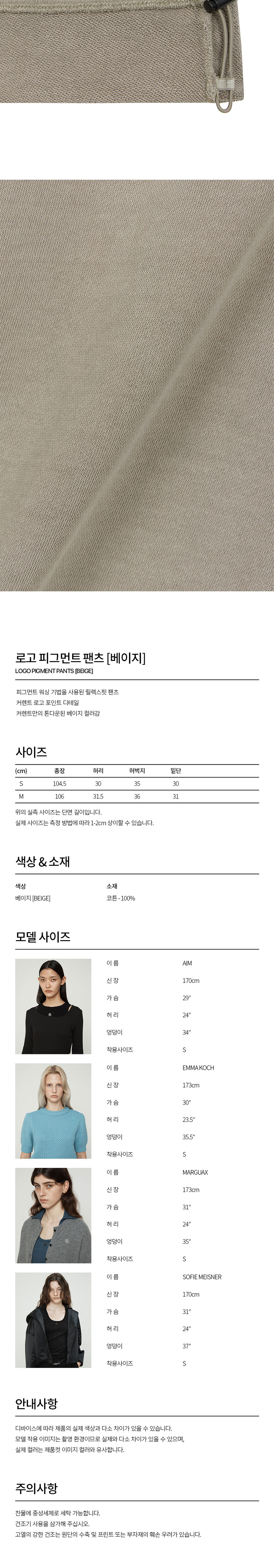커렌트 로고 피그먼트 팬츠 베이지