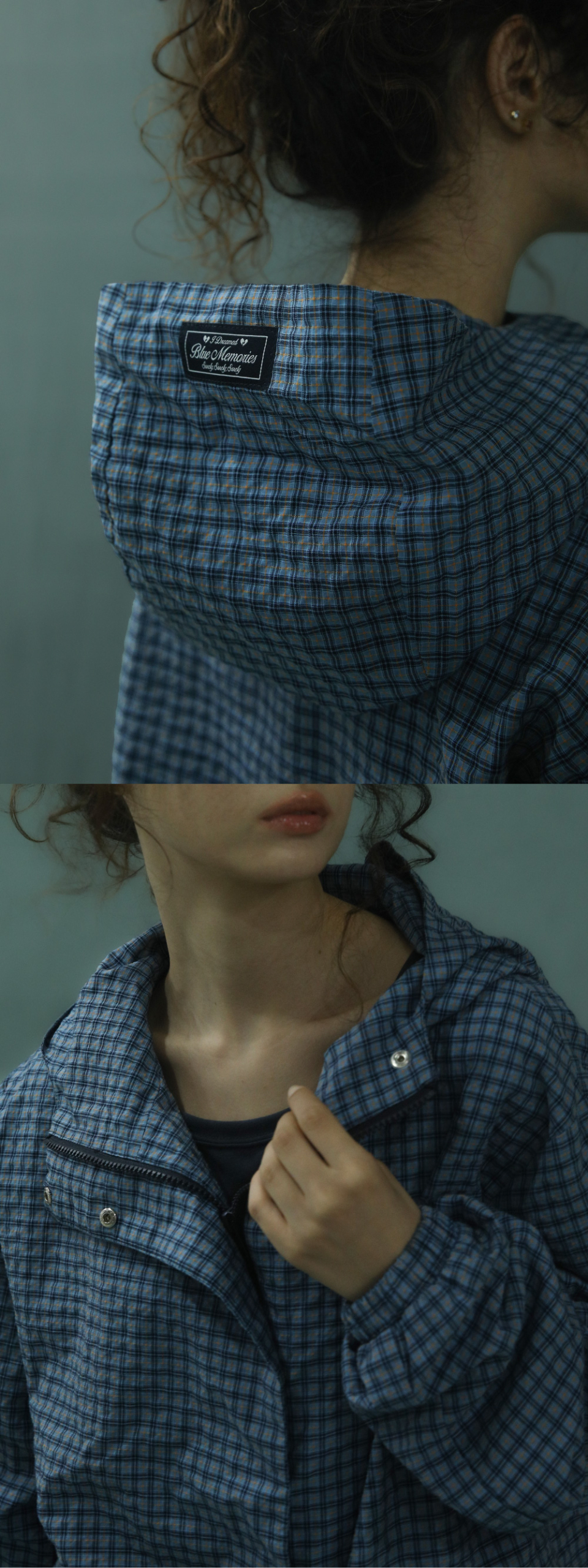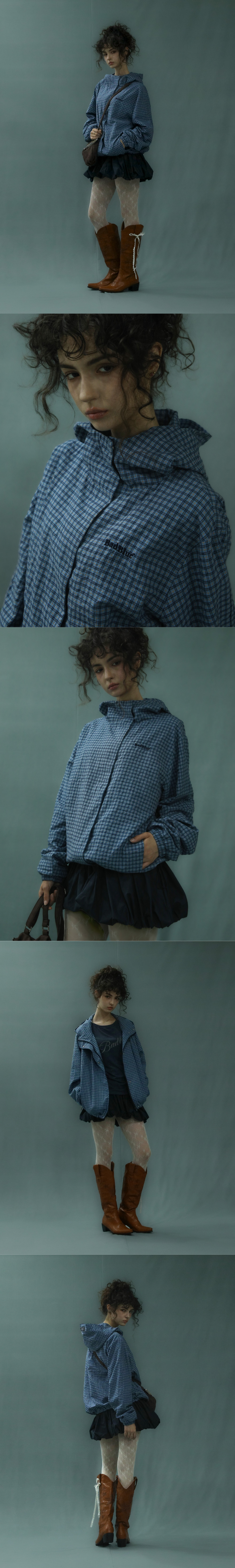 배드블루 체크 후디 자켓 블루