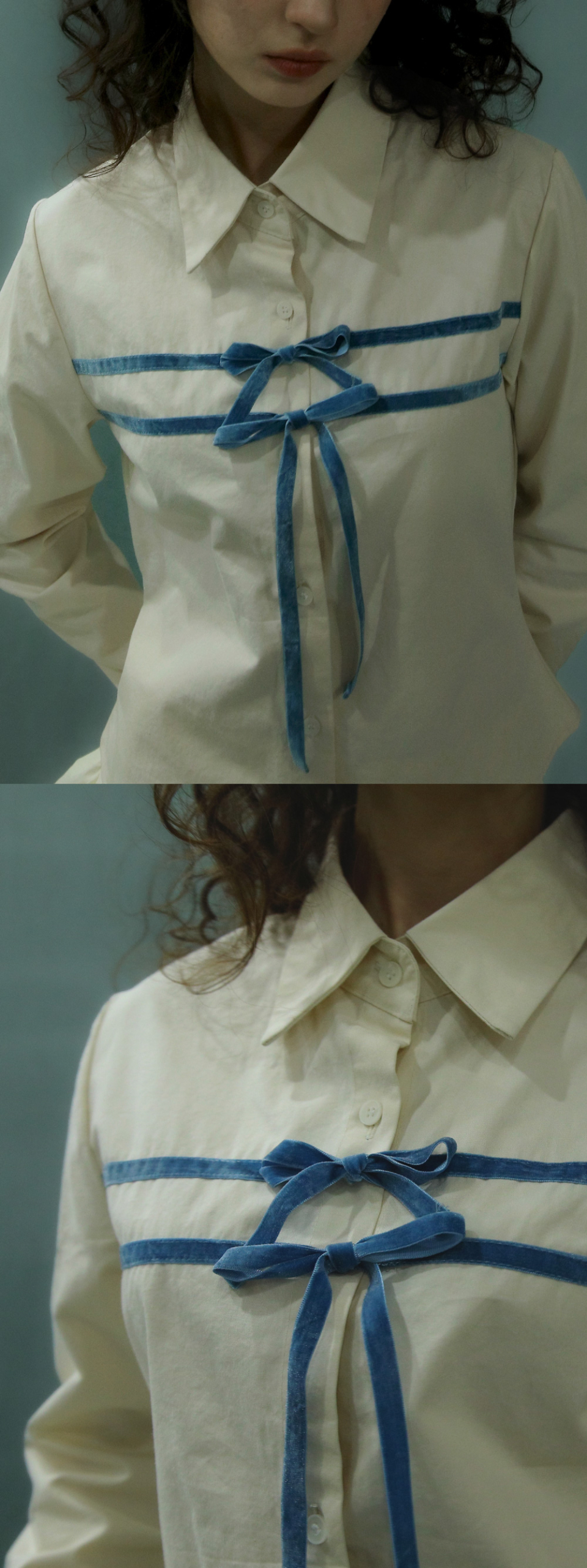 배드블루 더블 벨벳 타이 셔츠 버터