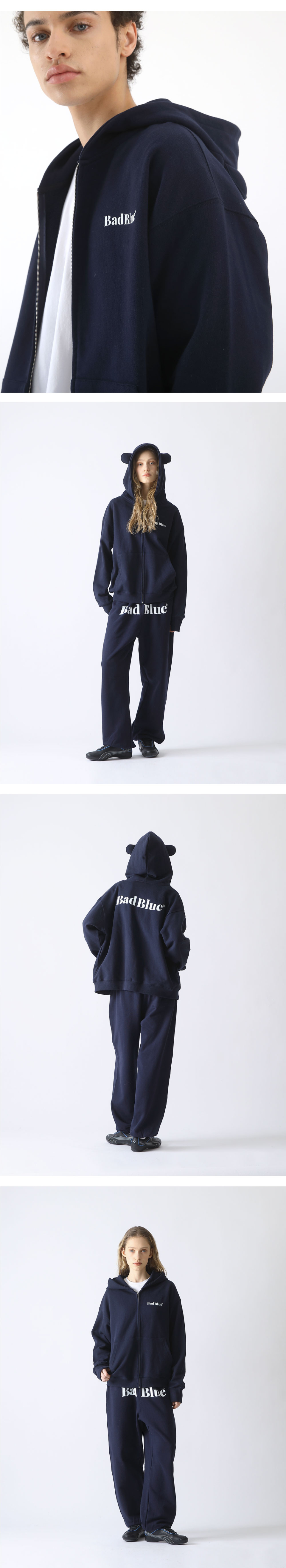 *모델 착용 사이즈 : 여성 1, 남성 2 *모델(남성) : 신장 181 / 가슴 86 / 허리 64 / 힙 94 (cm) *모델(여성 위) : 신장 173 / 가슴 74 / 허리 58 / 힙 81 (cm) *모델(여성 아래) : 신장 174 / 가슴 78 / 허리 58 / 힙 88 (cm) *측정방법 및 소재에 따라 1~2cm 차이가 있을 수 있습니다. *화면 해상도에 따라 사진과 실제 제품의 색감 차이가 있을 수 있습니다.