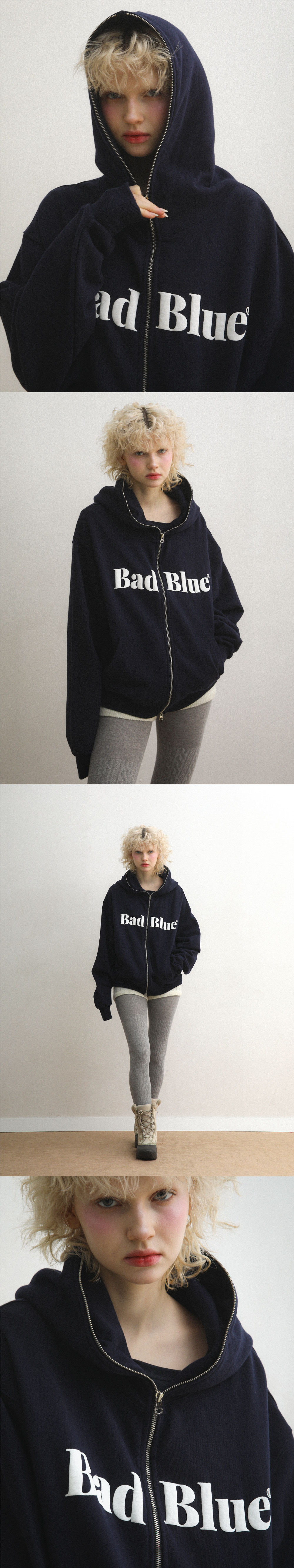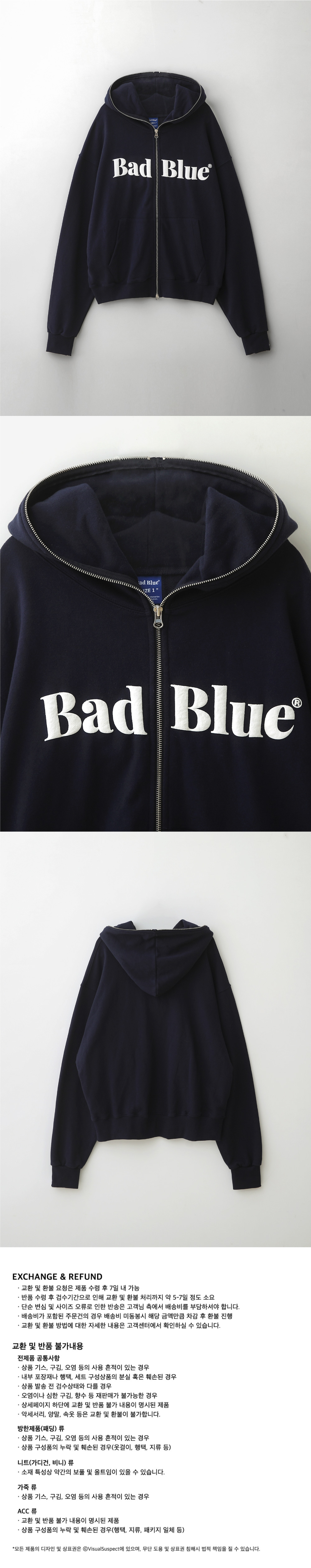 배드블루 로고 풀 집업 후디 네이비
