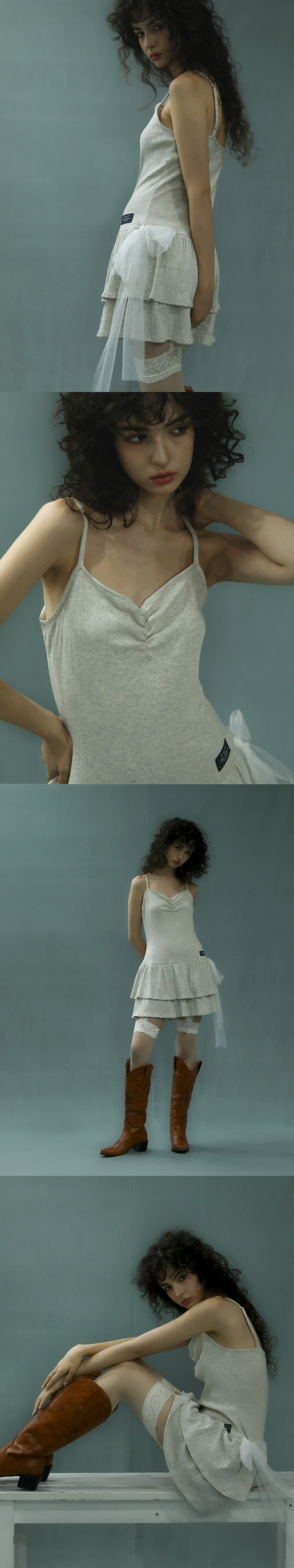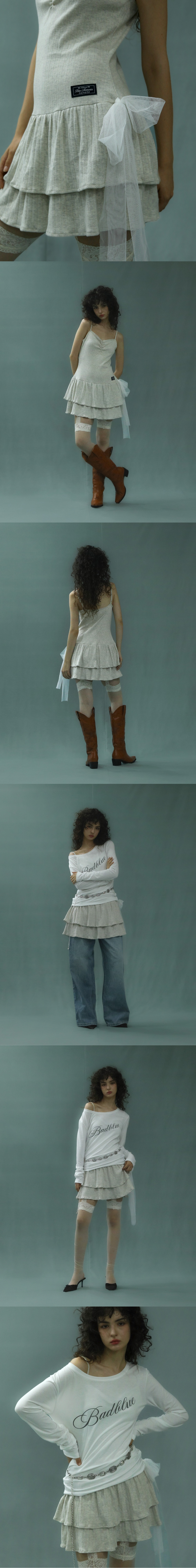 배드블루 사이드 타이 드레스 오트밀