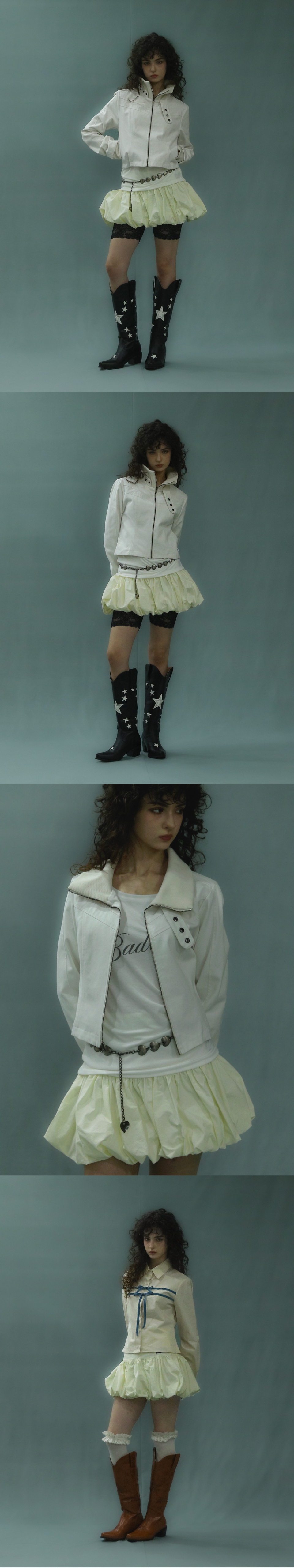 배드블루 벌룬 미니 스커트 크림