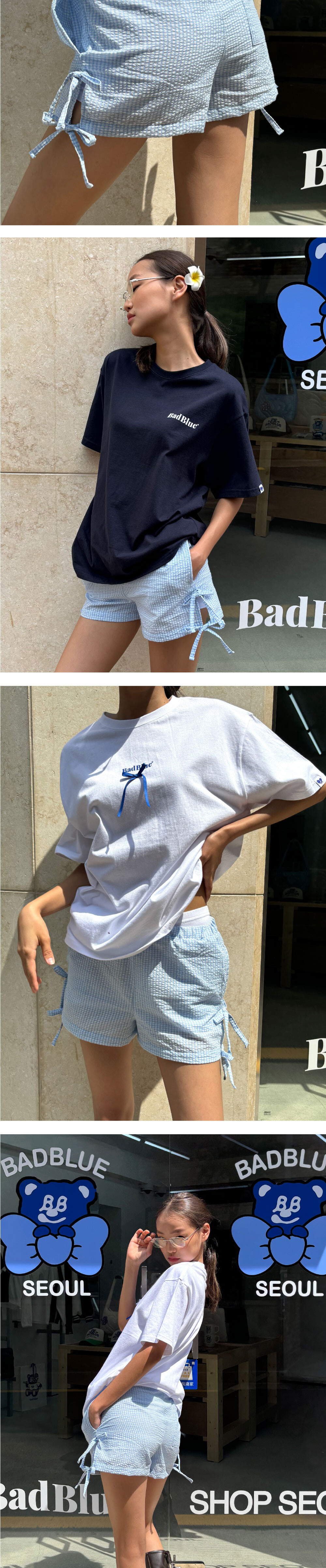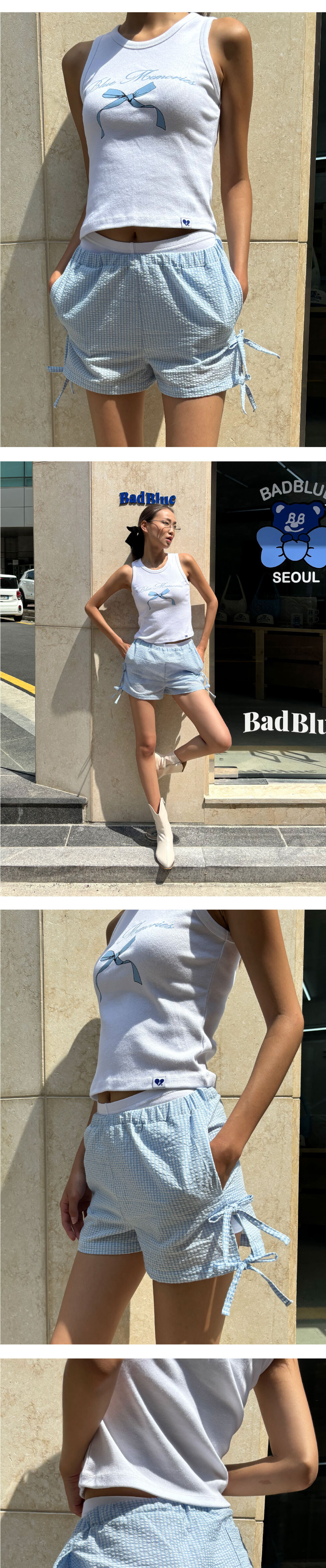 배드블루 체크 비치 쇼츠 스카이블루