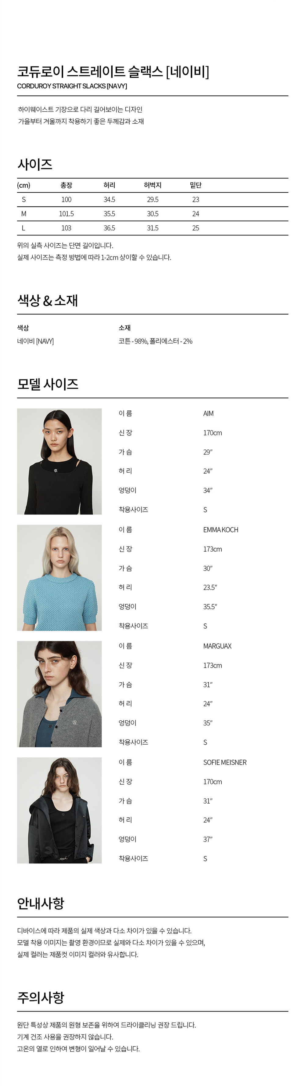 커렌트 코듀로이 스트레이트 슬랙스 네이비