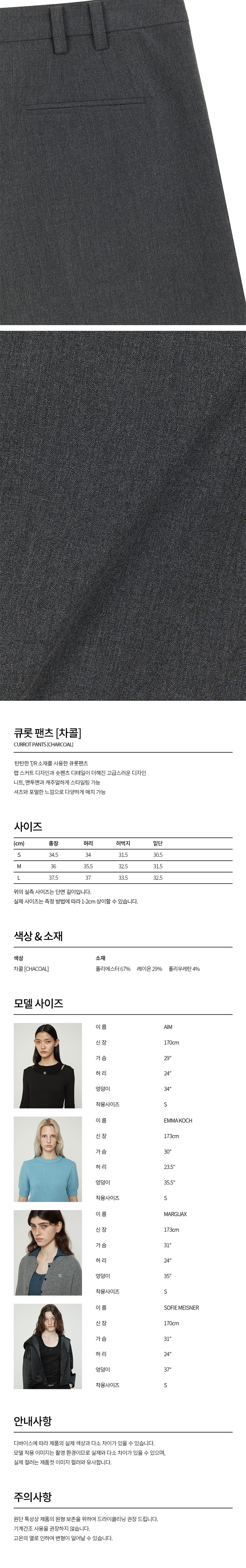 커렌트 큐롯 팬츠 차콜