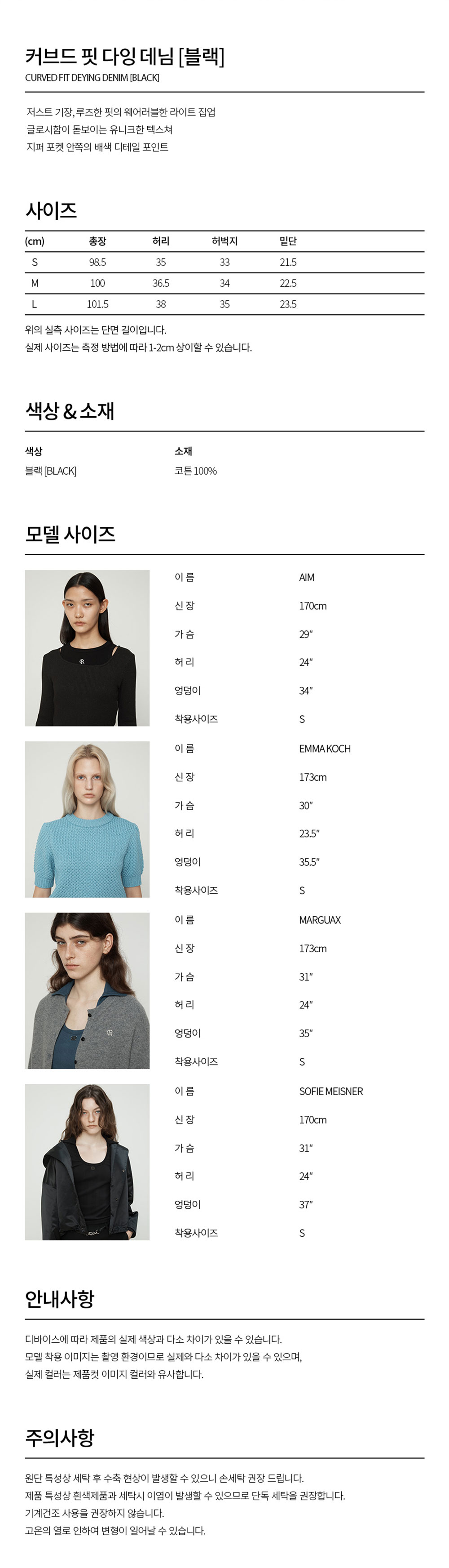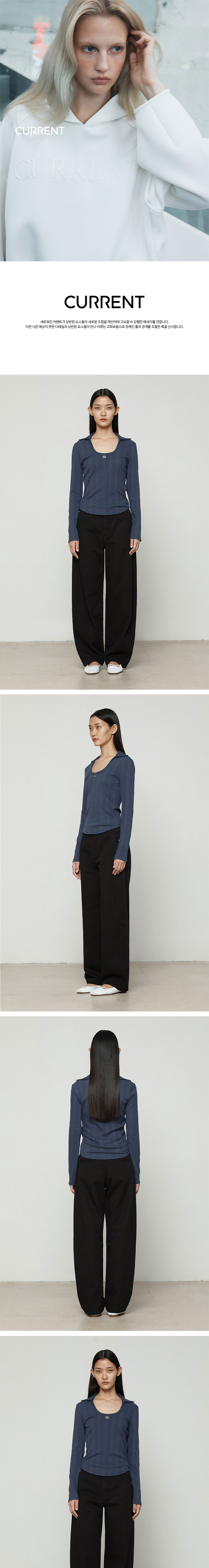 커렌트 커브드 핏 다잉 데님 블랙