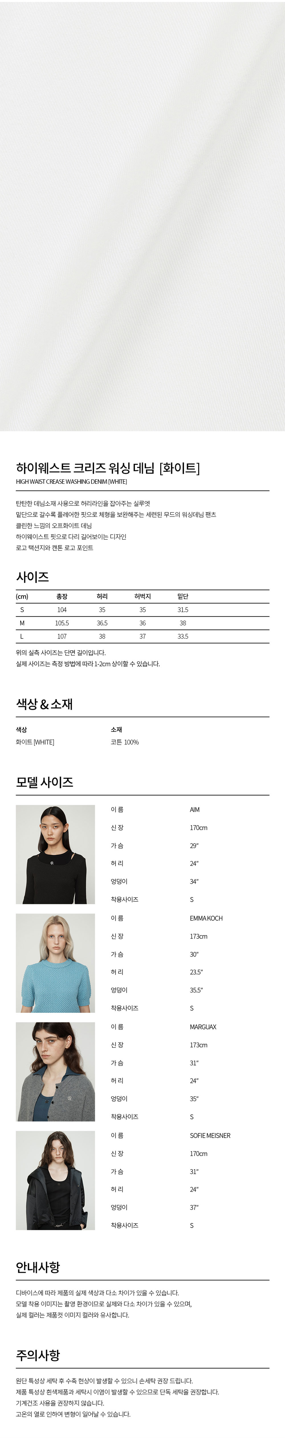 커렌트 하이웨스트 크리즈 워싱 데님 화이트