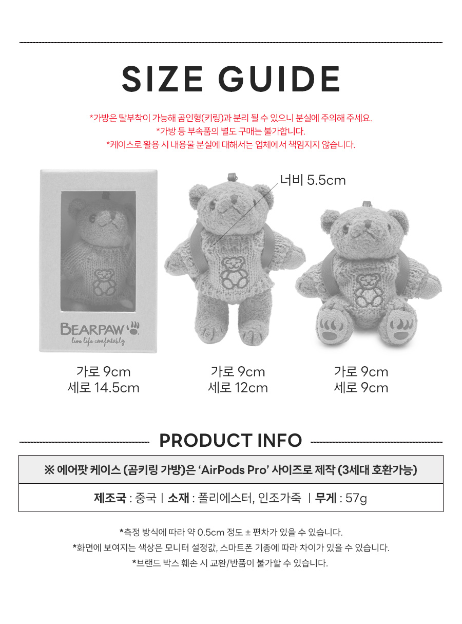 베어파우 베어 돌 에어팟 케이스 히코리 멀티