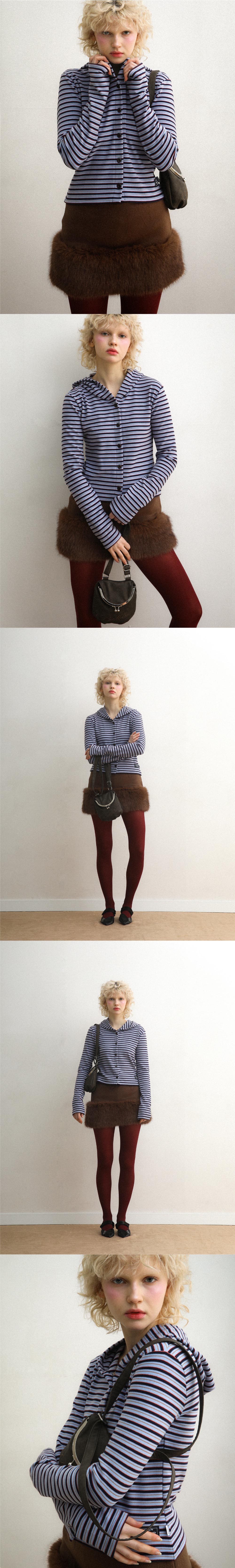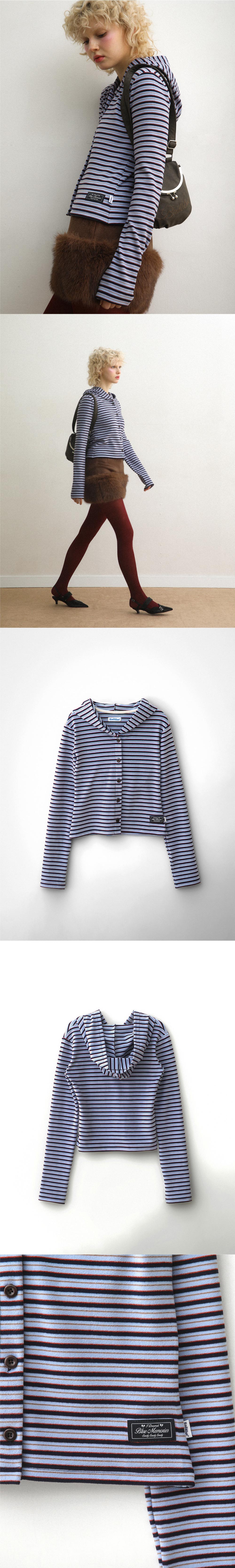 배드블루 스트라이프 후디 가디건 블루
