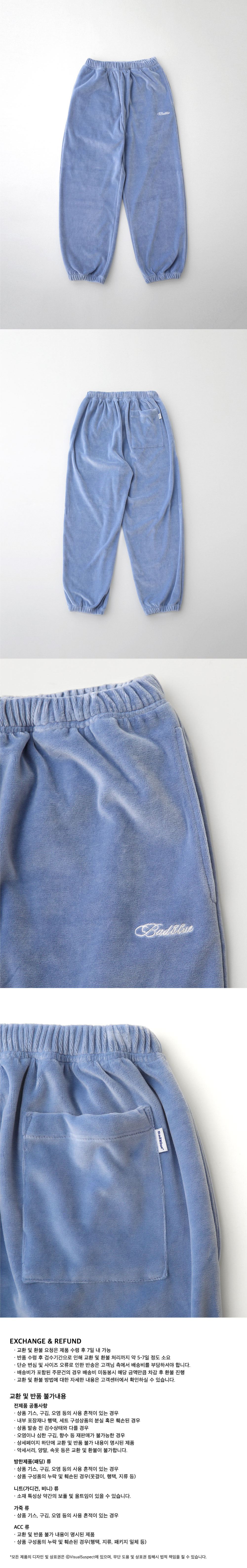 배드블루 벨로아 팬츠 스카이블루