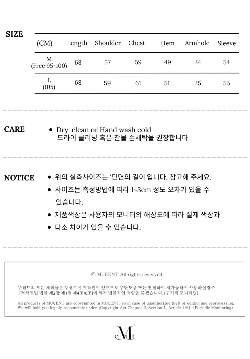 ┃Detail • 데일리하게 착용 가능한 루즈한 아웃핏 • 무센트 시그니처 로고 포인트 • 소매, 밑단 밴딩 처리 • 전면 수납 가능한 포켓 • 폴리 원단으로 가벼운 착용감 • 베이직한 디자인으로 캐주얼한 무드 ┃Material : Polyester 100% ┃Care : Dry cleaning - 무센트는 말기의 행성인 이 지구에서 지속 가능한 옷들을 고민합니다. 우리는 신념을 소비하는 미닝아웃을 지지합니다.