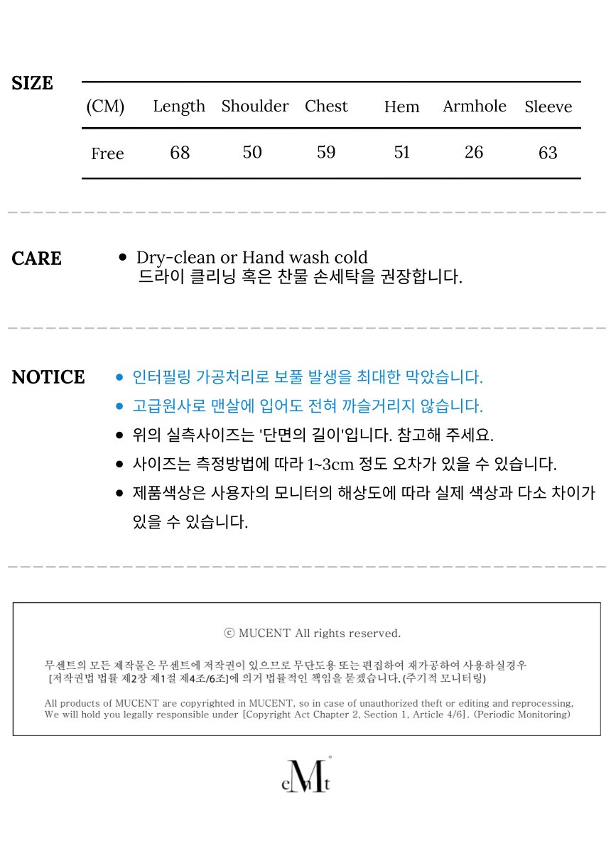 ┃Detail • 무센트 시그니처 자수 로고 • 고중량 원사의 특유의 보온성과 보드라운 터치감 • 편안하고 자연스럽게 떨어지는 드롭숄더 디자인 • 간절기에는 단독으로, 겨울철에는 이너로 높은 활용도 • 포근하고 여유로운 루즈핏 실루엣 • 입체적인 텍스쳐 원사의 니트 • 털빠짐 최소화 공정 거친 원단 ┃Material : Viscose 50%, polyester 30%, Nylon 20% ┃Care : Dry cleaning - 무센트는 말기의 행성인 이 지구에서 지속 가능한 옷들을 고민합니다. 우리는 신념을 소비하는 미닝아웃을 지지합니다.
