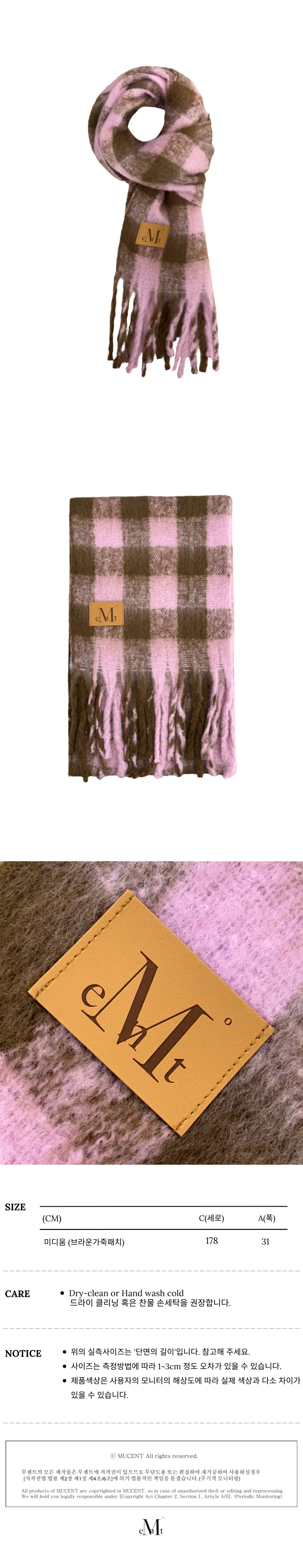 무센트 시그니처 머플러 브라운 레더 패치 미디움 핑크 체크
