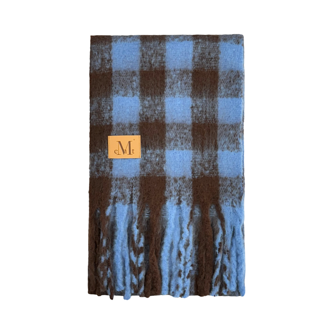 MUCENT Signature Muffler Brown Leather Patch Medium Blue Check