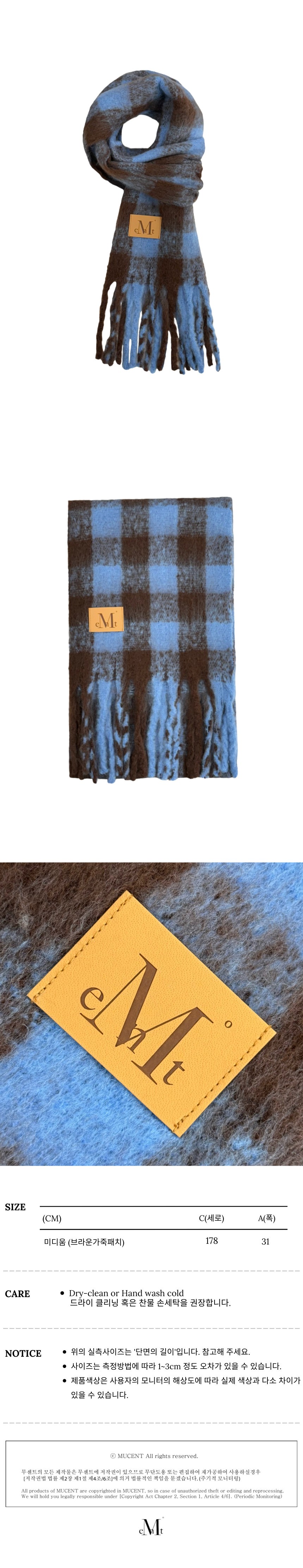 ┃Detail • 체크 컬러 패턴 • 미디움 기장의 머플러 • 가볍고 보들보들한 텍스처 • 포인트 체크 컬러 • 가죽 패치 디테일 ┃Material : Polyester 100% ┃Care : Dry cleaning - 무센트는 말기의 행성인 이 지구에서 지속 가능한 옷들을 고민합니다. 우리는 신념을 소비하는 미닝아웃을 지지합니다.