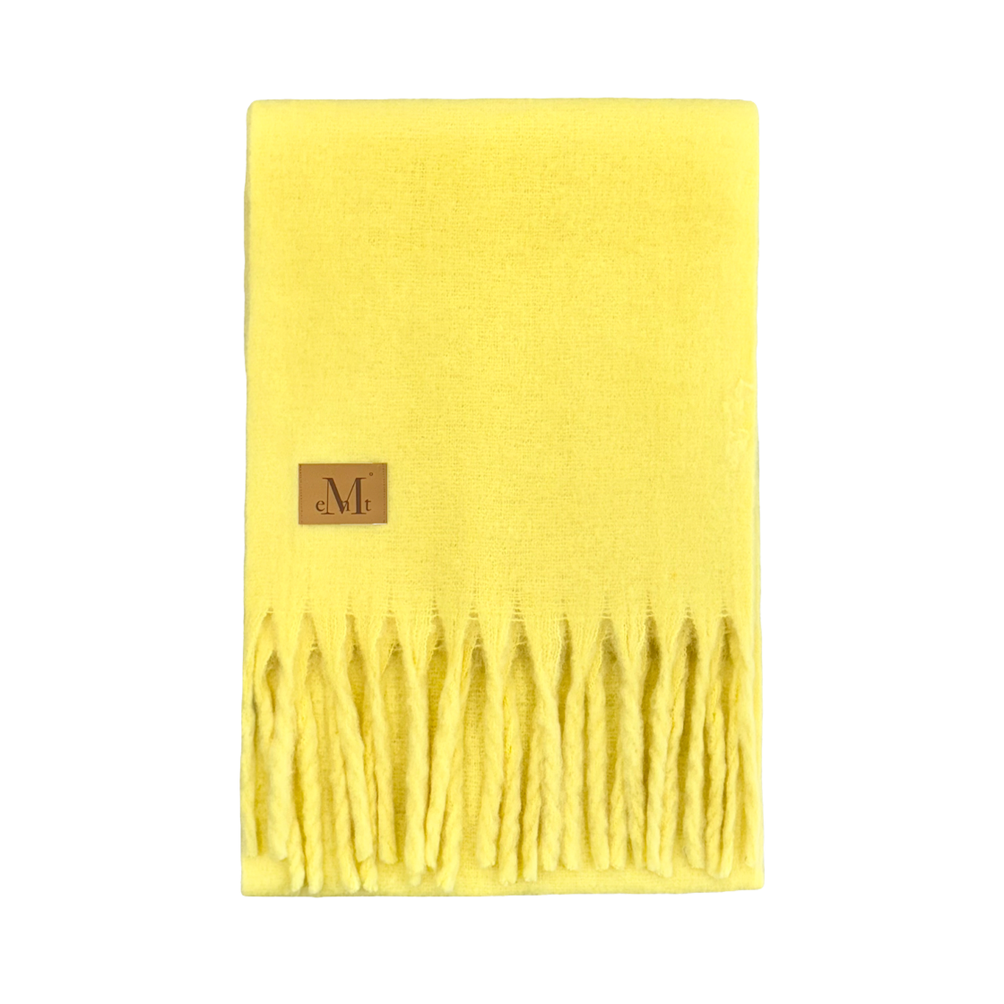 무센트 시그니처 머플러 브라운 레더 패치 롱 버터 옐로우