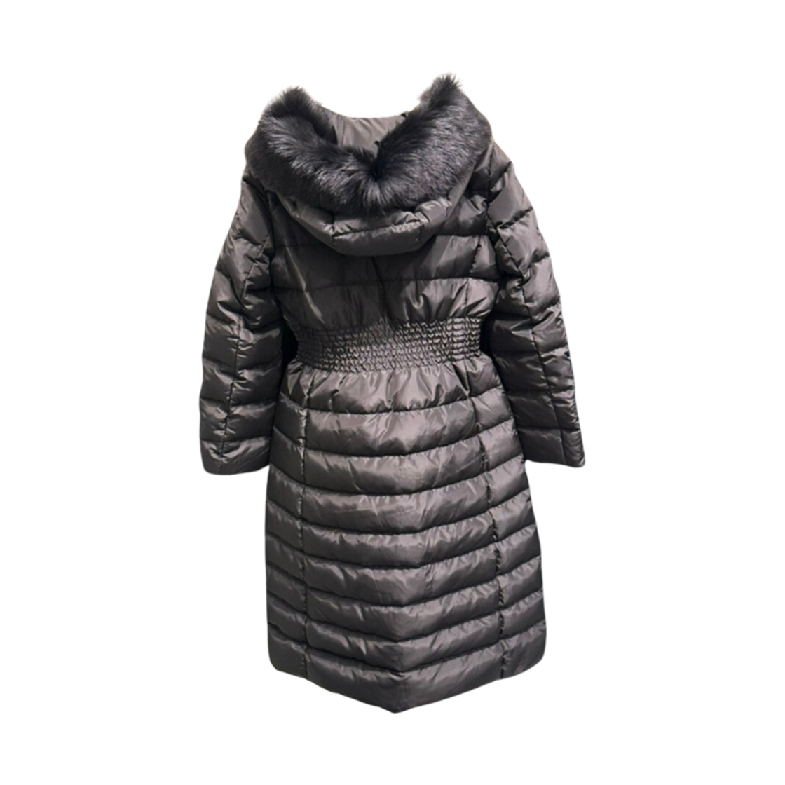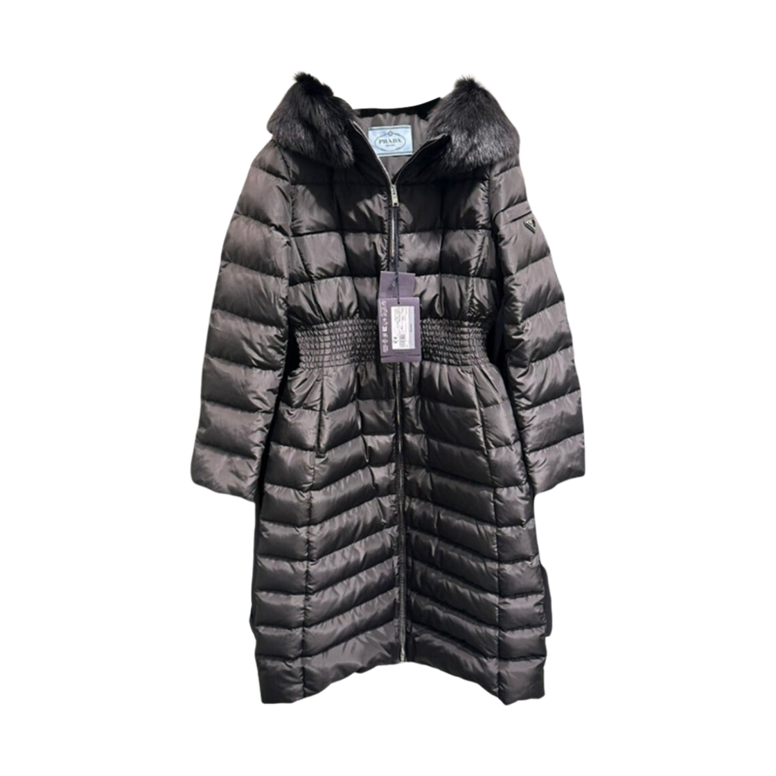 프라다 트라이앵글 로고 밴딩 구스다운 롱 패딩 블랙