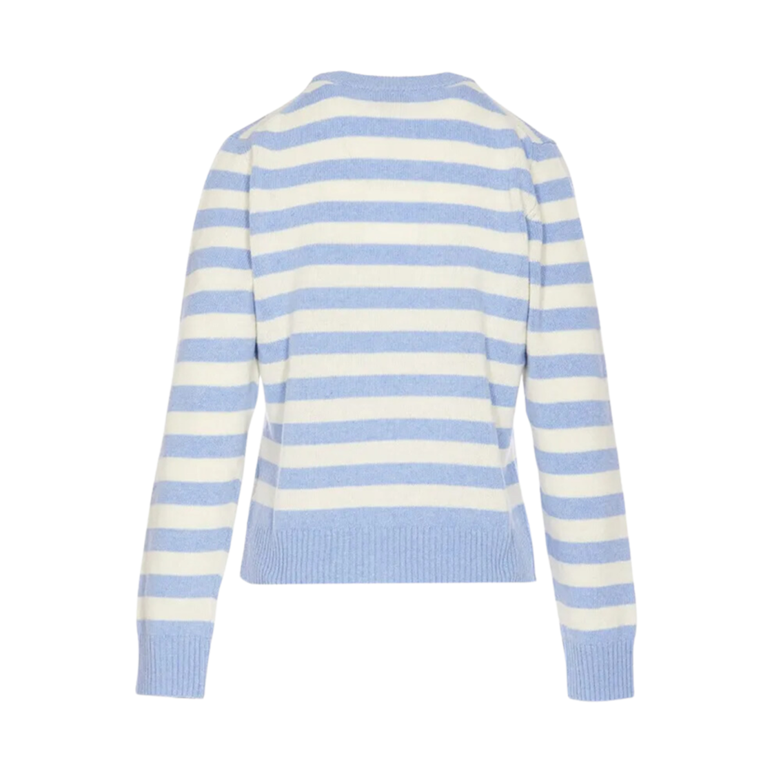 (W) Ganni Striped Graphic Cat Jumper Illusion Blue
