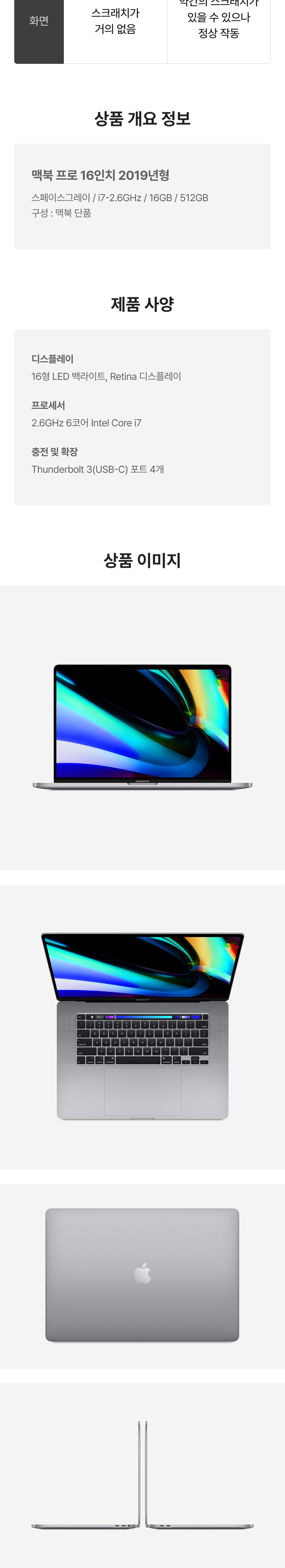 [A등급] 리퍼비시 2019 맥북 프로 16 i7-2.6GHz 512기가 SSD 16기가 램 스페이스그레이