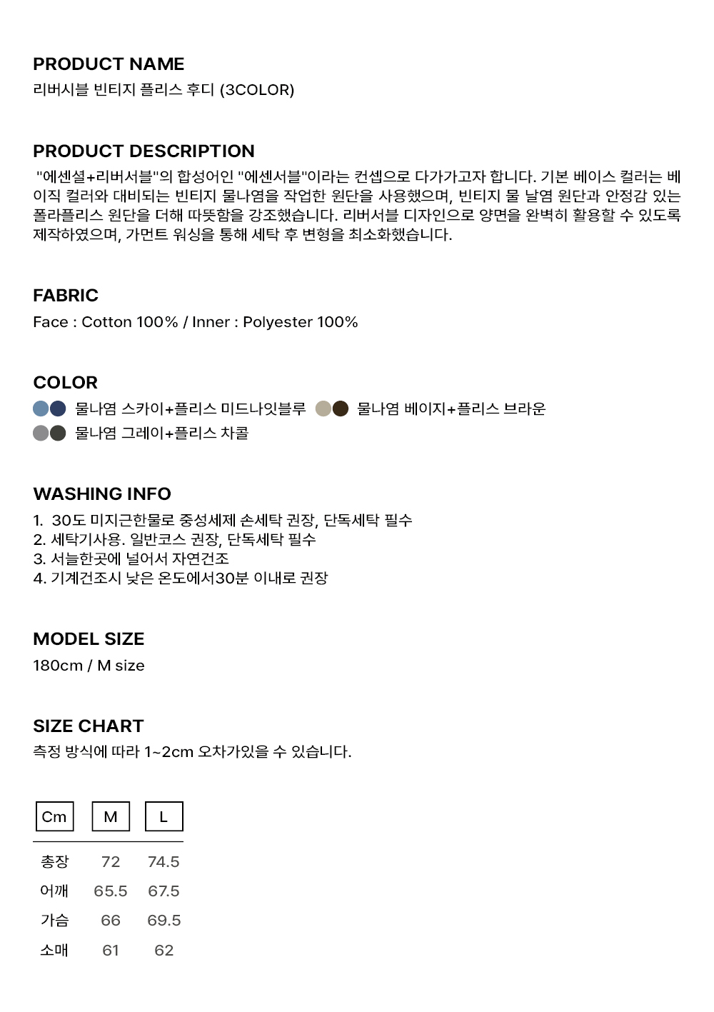 측정 방법에 따라 사이즈에 일부 오차가 있을 수 있습니다.
