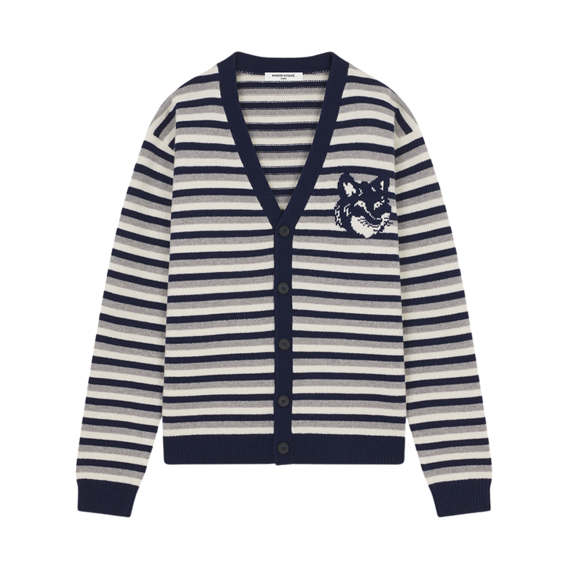 메종 키츠네 폭스 헤드 인타르시아 스트라이프 컴포트 가디건 네이비 화이트