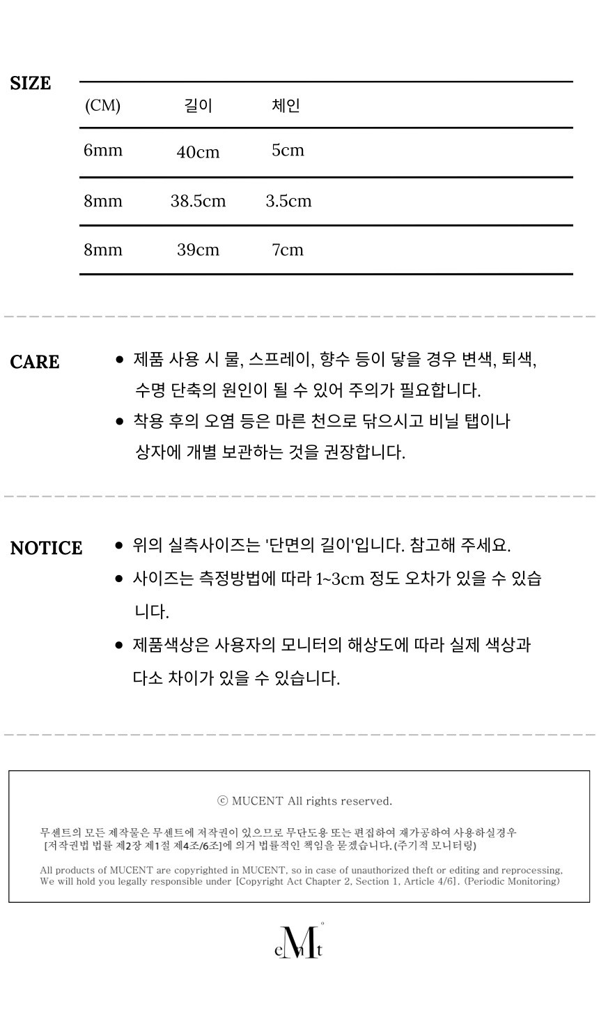 ┃Detail • 가벼운 착용감 • 타원 펜던트 포인트 • 무센트 시그니처 로고 포인트 • 데일리 스타일링 아이템 • 은은한 광택감 ┃Material : Acrylic 100% ┃Care : Dry cleaning - 무센트는 말기의 행성인 이 지구에서 지속 가능한 옷들을 고민합니다. 우리는 신념을 소비하는 미닝아웃을 지지합니다.