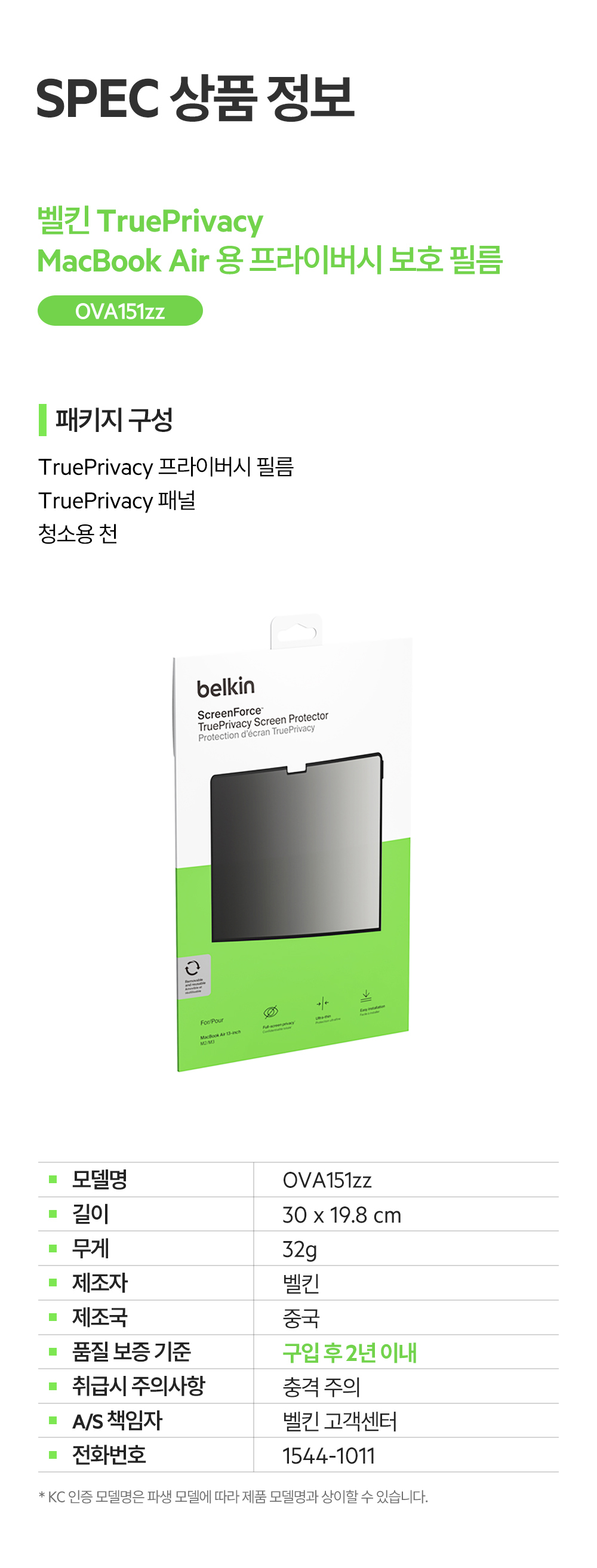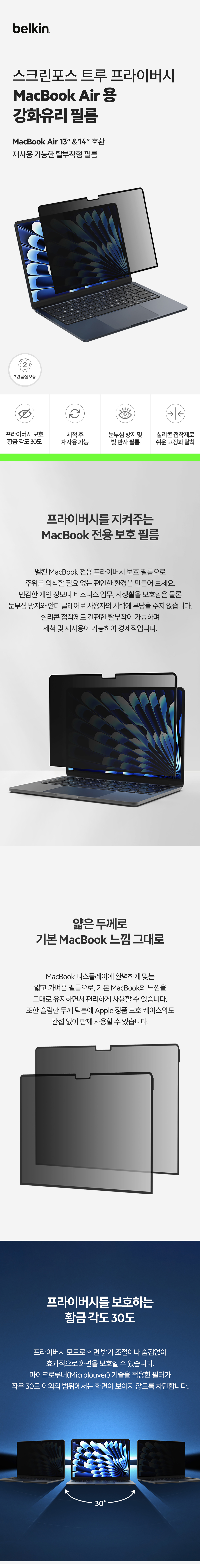 벨킨 맥북 에어 14 13인치 프라이버시 사생활 보호 필름 OVA151zz