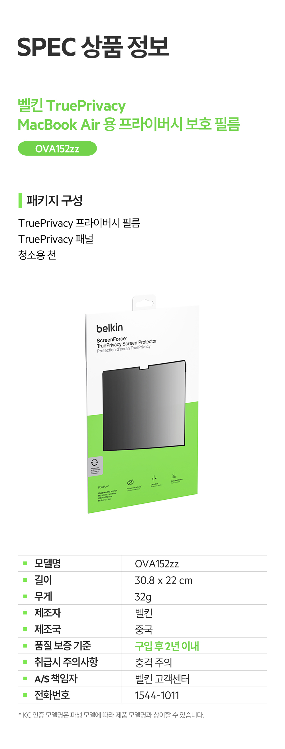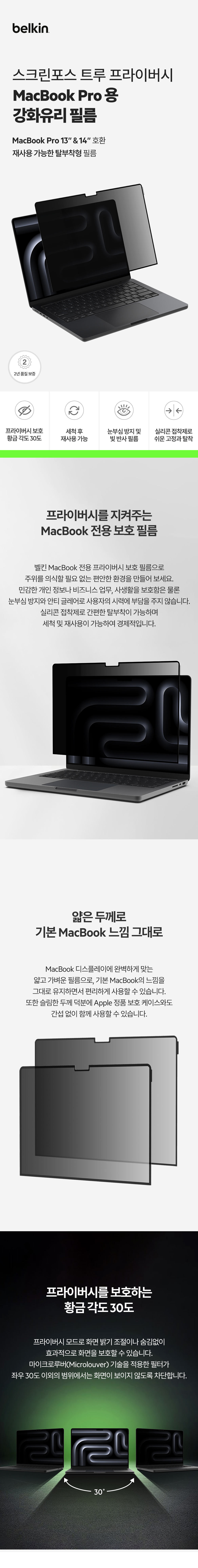 벨킨 맥북 프로 14 13인치 프라이버시 사생활 보호 필름 OVA152zz