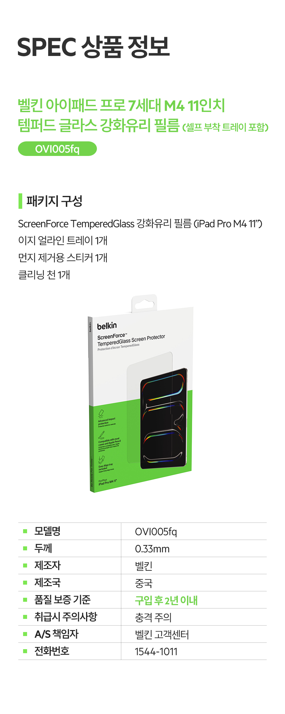 벨킨 아이패드 프로 M4 11인치 강화유리 필름 OVI005