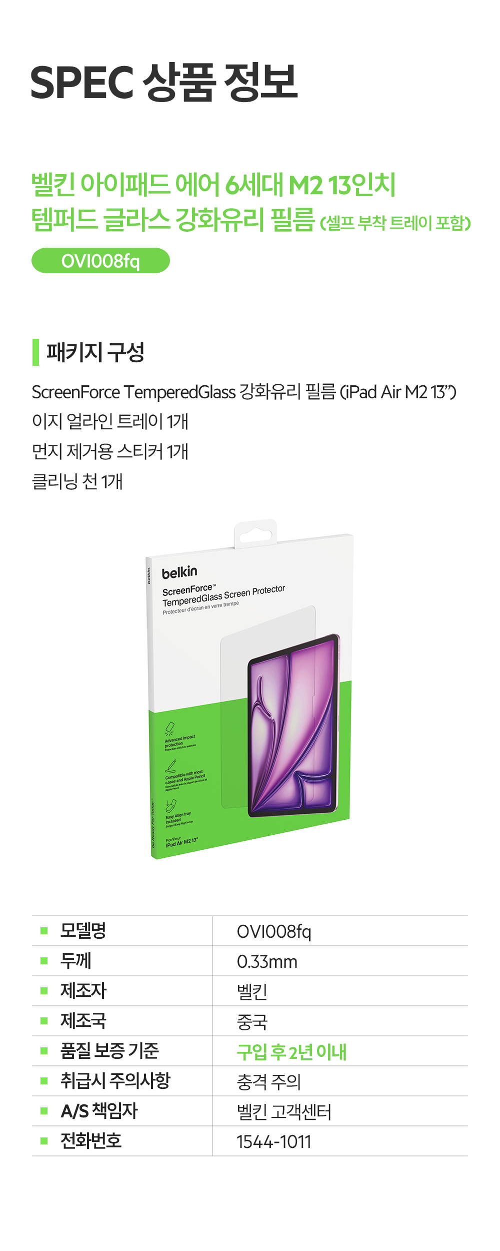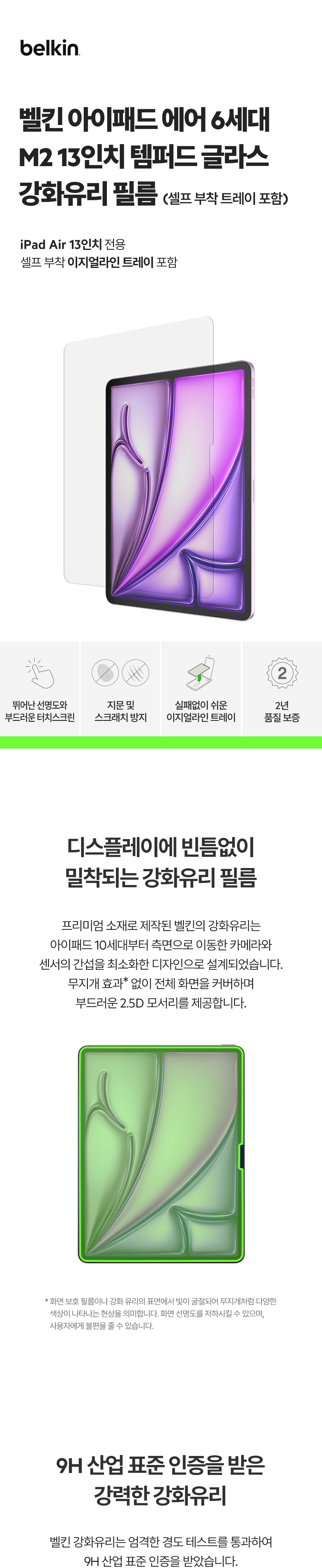 벨킨 아이패드 에어 M2 13인치 강화유리 필름 OVI008