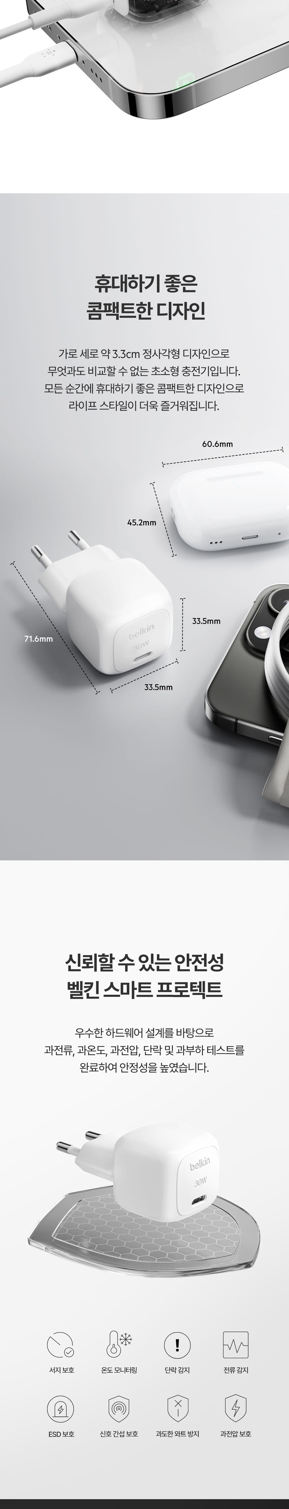 벨킨 30W C타입 PD 3.1 PPS 고속 충전기 WCA008kr