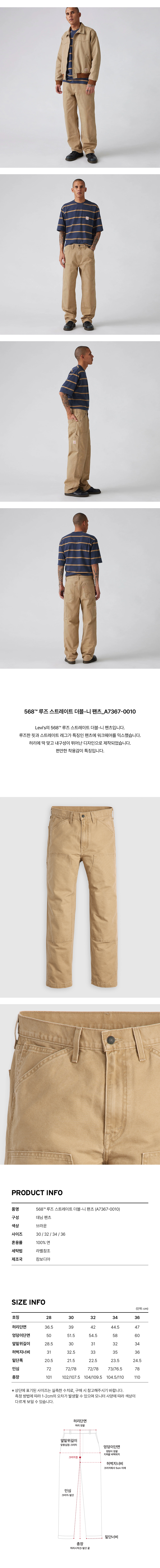 리바이스 568 루즈 스트레이트 더블 니 팬츠 브라운