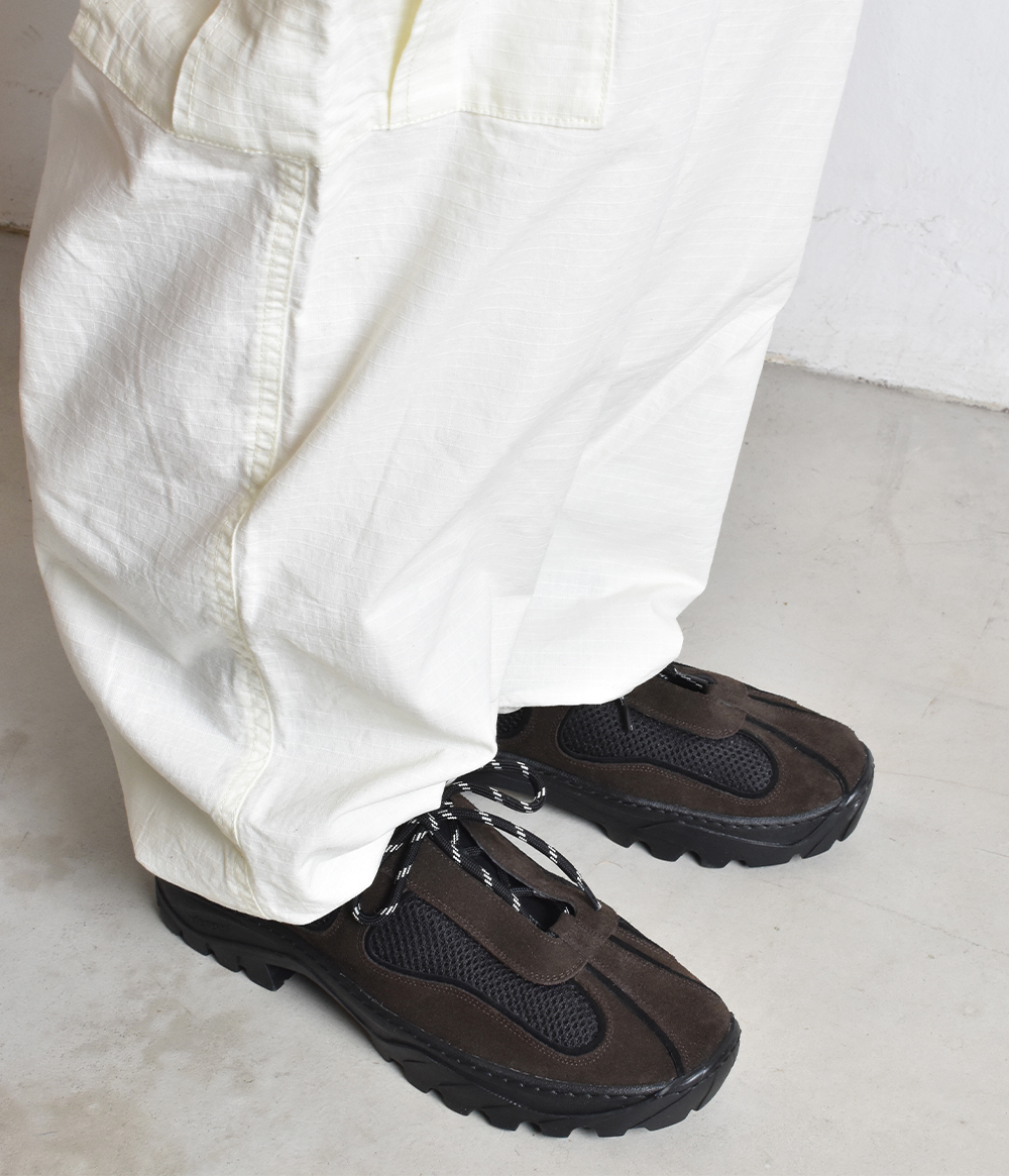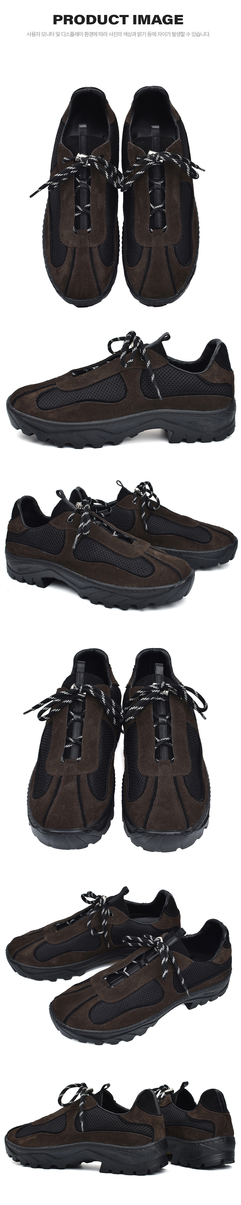 빈티지 프라다,코르테즈,ACG 아카이브에서 디자인을 착안하여 하이킹화, 트래킹화의 보편적인 투박함을 걷어내고 패턴 라인에 구조적인 변형을 가미하여 친숙하지만 유니크한 디테일에 하이엔드적인 무드의 데베시용 트래킹 슈즈 입니다. - 상품정보 Color: Choco Brown Upper: Cow Split & Lamb Suede, Mesh Lining: Pig Skin Insole: Latex Foam (0.3cm) & PU Outsole: Vibram Rubber Sole (4cm) - 제작기간 및 사이즈 정보 * 해당 상품의 경우 제작기간이 12일에서 14일 정도 소요됩니다.(주말, 공휴일 제외한 평일 기준) * 정사이즈로 구매하시는걸 추천해드립니다.(권장 추천 사이즈로 개인 족형에 따라 체감상 느끼시는 사이즈와 다를수 있습니다.) ※ 주문내용의 변경 또는 취소가 어려우니 사이즈 상담이 필요하신 경우 주문 전에 문의 주시기 바랍니다.