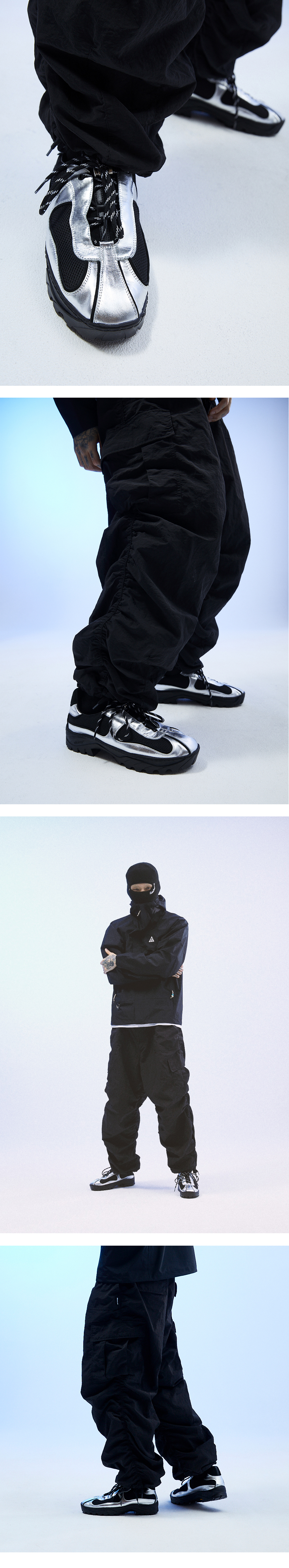 빈티지 프라다,코르테즈,ACG 아카이브에서 디자인을 착안하여 하이킹화, 트래킹화의 보편적인 투박함을 걷어내고 패턴 라인에 구조적인 변형을 가미하여 친숙하지만 유니크한 디테일에 하이엔드적인 무드의 데베시용 트래킹 슈즈 입니다. - 상품정보 Color: Metallic Silver Upper: Cow Skin & Lamb Suede, Mesh Lining: Pig Skin Insole: Latex Foam (0.3cm) & PU Outsole: Vibram rubber sole (4cm) - 제작기간 및 사이즈 정보 * 해당 상품의 경우 제작기간이 12일에서 14일 정도 소요됩니다.(주말, 공휴일 제외한 평일 기준) * 정사이즈로 구매하시는걸 추천해드립니다.(권장 추천 사이즈로 개인 족형에 따라 체감상 느끼시는 사이즈와 다를수 있습니다.) ※ 주문내용의 변경 또는 취소가 어려우니 사이즈 상담이 필요하신 경우 주문 전에 문의 주시기 바랍니다.