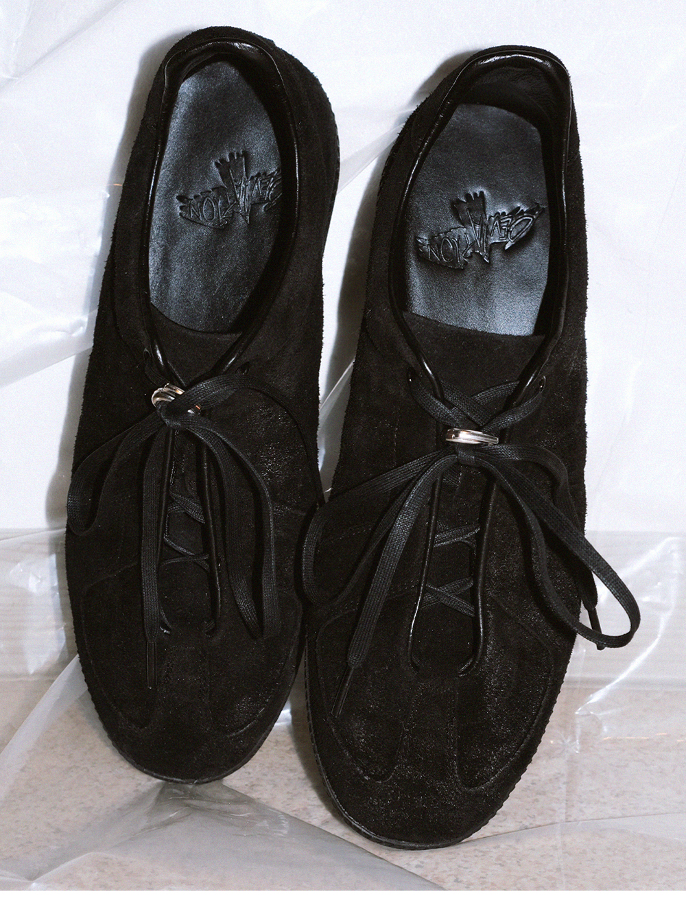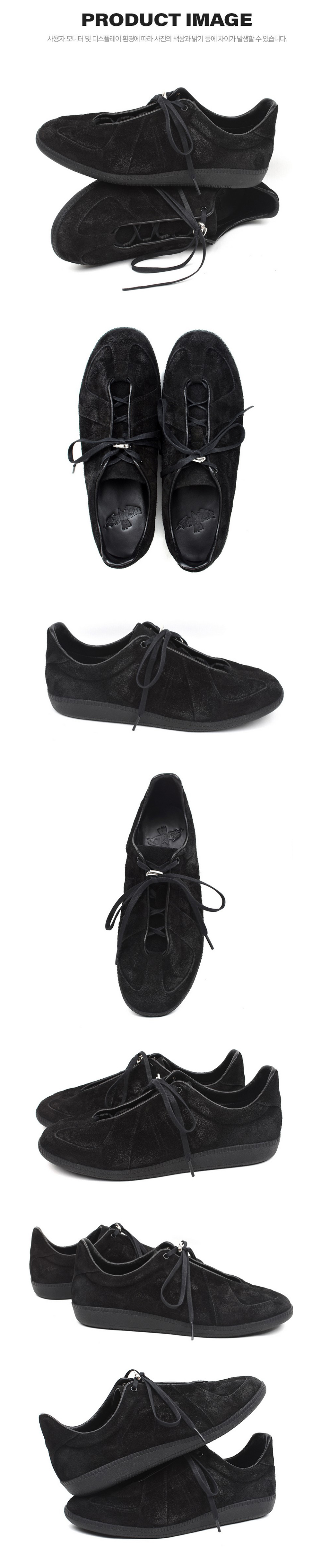 * 해당 상품은 주문 제작상품이므로, 제작 기간은 주말 및 공휴일을 제외한 평일 기준 12~14일 정도 소요됩니다. 이 점 참고하시어 주문 부탁드립니다. 레이싱 슈즈에서 느낄 수 있는 굴곡있는 날렵한 쉐입과 스테디셀러 제품인 독일군 밀리터리 트레이너 슈즈 디테일이 조화롭게 디자인 된 레이싱 트레이너 슈즈입니다. - 상품정보 Color: Vintage BF Black Upper: Split Cow Leather 버핑 Lining: Pig Leather x air mesh Insole: Latex Foam (0.3cm) & PU Outsole: Training Rubber Sole (2.5cm) Non-Slip - 제작기간 및 사이즈 정보 * 발볼이 넓지 않고 발등이 높지 않다면 정사이즈로 구매하시는걸 추천해드립니다.(권장 추천 사이즈로 개인 족형에 따라 체감상 느끼시는 사이즈와 다를수 있습니다.) ※ 주문내용의 변경 또는 취소가 어려우니 사이즈 상담이 필요하신 경우 주문 전에 문의 주시기 바랍니다.