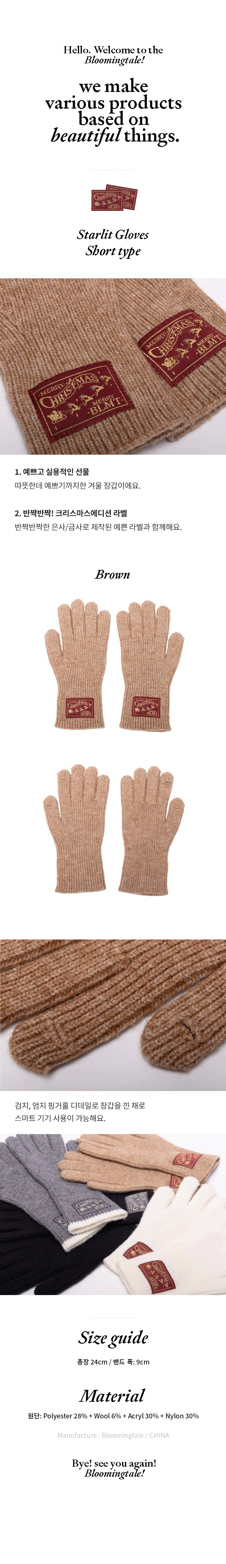 - 색상은 모니터 설정과 해상도에 따라 실제품과 차이가 있을수 있으며, 이는 불량이 아닌 점 참고 부탁드립니다. - 긁히거나, 찔리는 경우 올 풀림, 리본 탈락 등의 파손이 있을 수 있습니다. - 핸드메이드 제품으로 제품마다 형태, 대칭 차이가 있을 수 있습니다. - 스마트폰 터치를 위한 홀 처리 또는 특수처리 되어있지 않습니다. - 기름기 등 오염 성분이 있는 장소에서 사용은 피해야 합니다. - 원단 특성상 초반 털 빠짐 현상 발생할 수 있으며, 불 옆에 놓으면 변형될 수 있습니다. [주의사항] - 물세탁 시 소재 변형 발생할 수 있습니다. - 염소, 산소계 표백제로 표백할 수 없습니다. - 세탁 시 변형/얼룩이 생길 수 있어 셀프 세탁은 할 수 없고, 드라이클리닝 또는 전문 세탁 업체 위탁을 권장합니다. - 세탁 후 건조 시, 기계 건조를 할 수 없습니다. ※배송 중 손상되었거나 성능에 이상이 있을 경우 구입일로부터 7일 이내 교환 가능합니다.