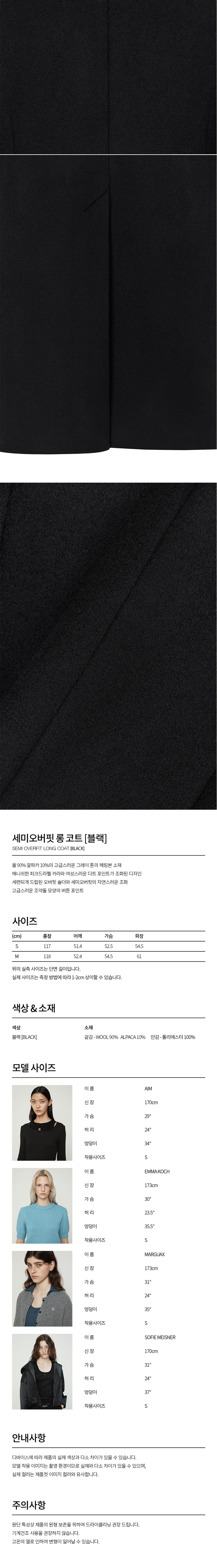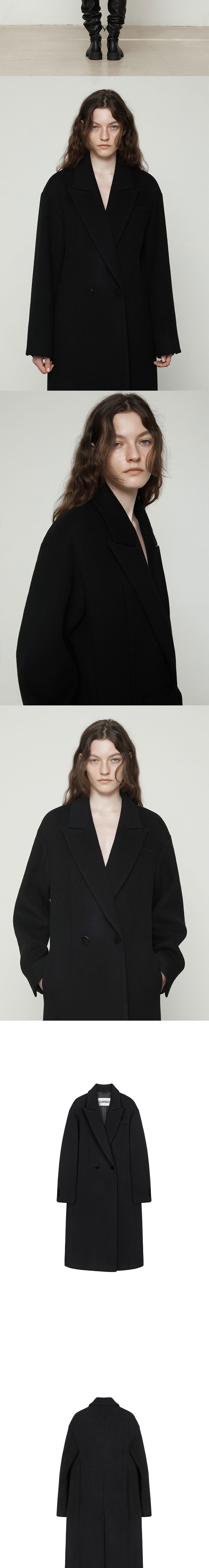 커렌트 세미오버 핏 롱 코트 블랙
