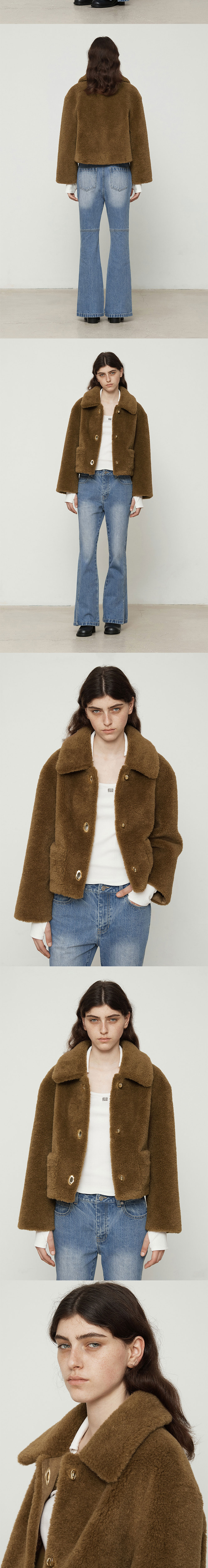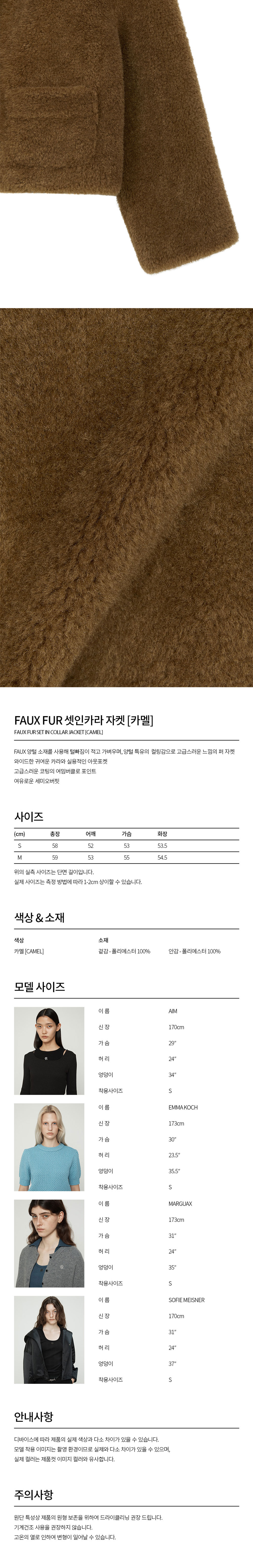 커렌트 페이크 퍼 셋인카라 자켓 카멜