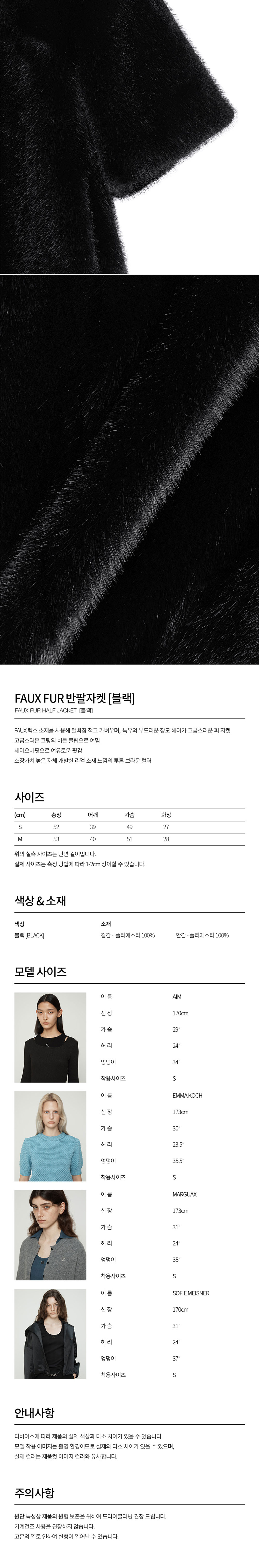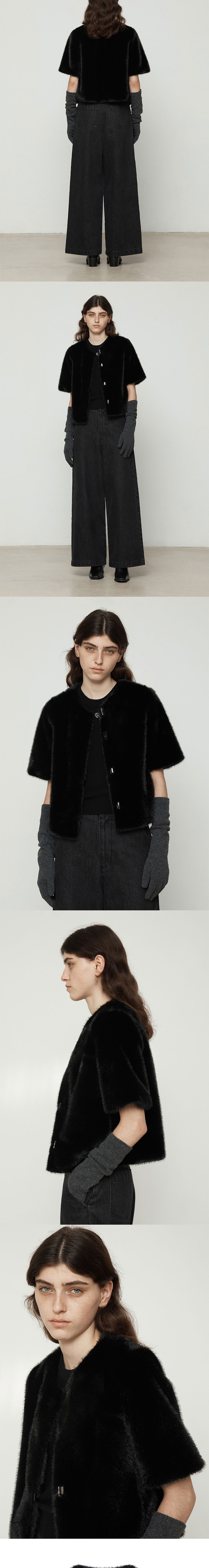 커렌트 페이크 퍼 하프자켓 블랙
