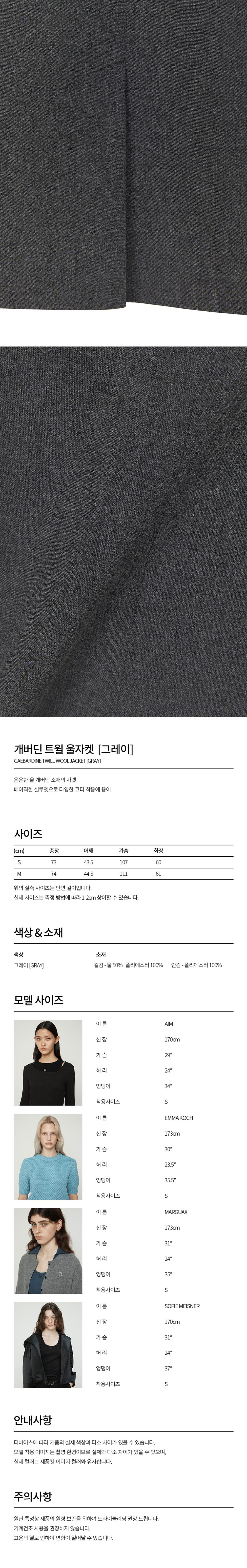 커렌트 개버딘 트윌 울 자켓 그레이