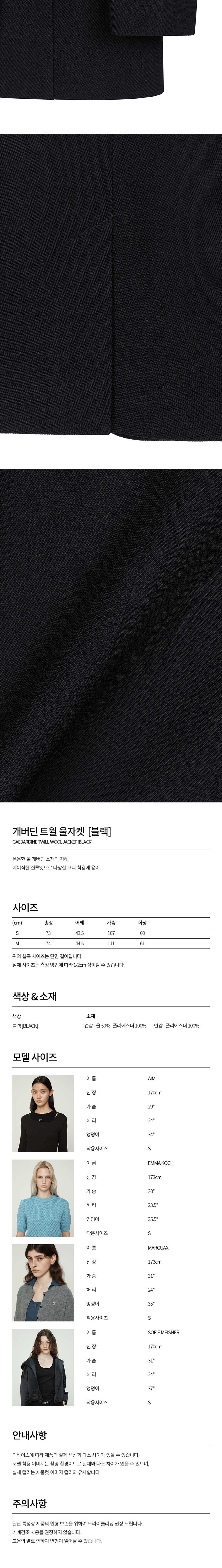 커렌트 개버딘 트윌 울 자켓 블랙