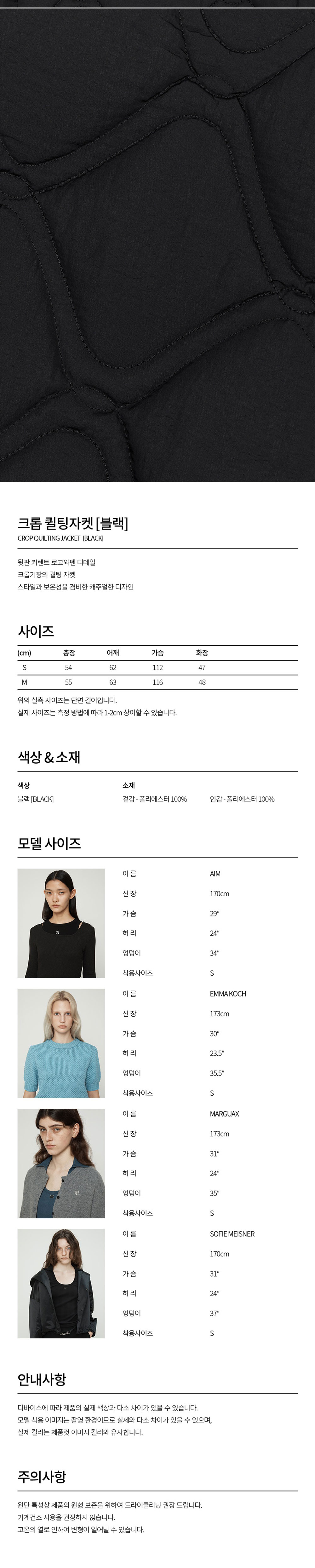커렌트 크롭 퀼팅 자켓 블랙