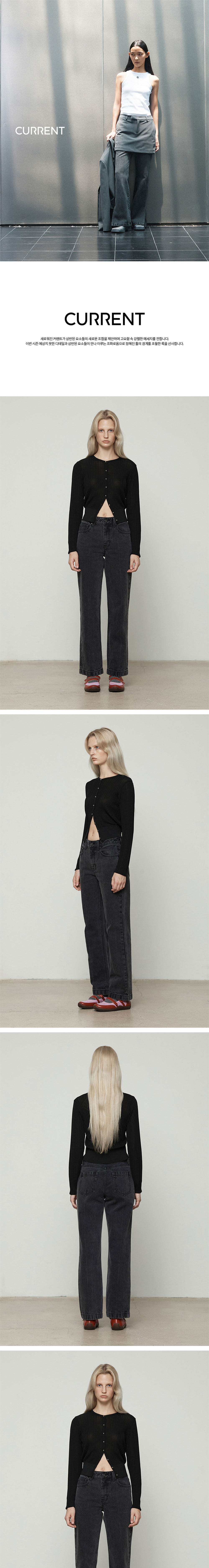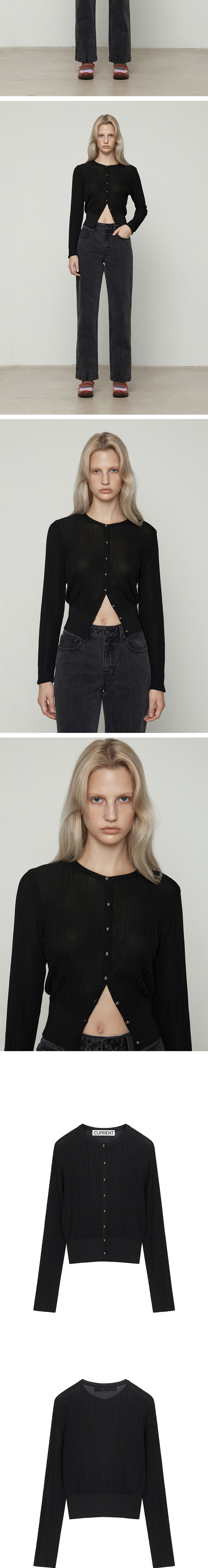 커렌트 레이온 라운드 니트 가디건 블랙