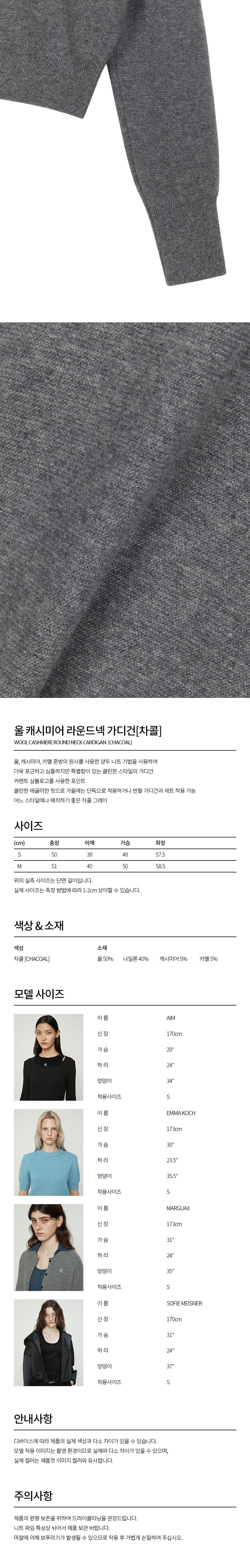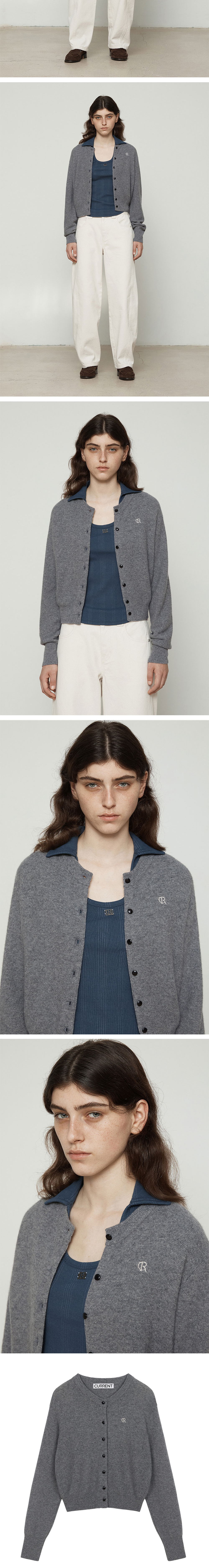 커렌트 울 캐시미어 라운드넥 가디건 차콜