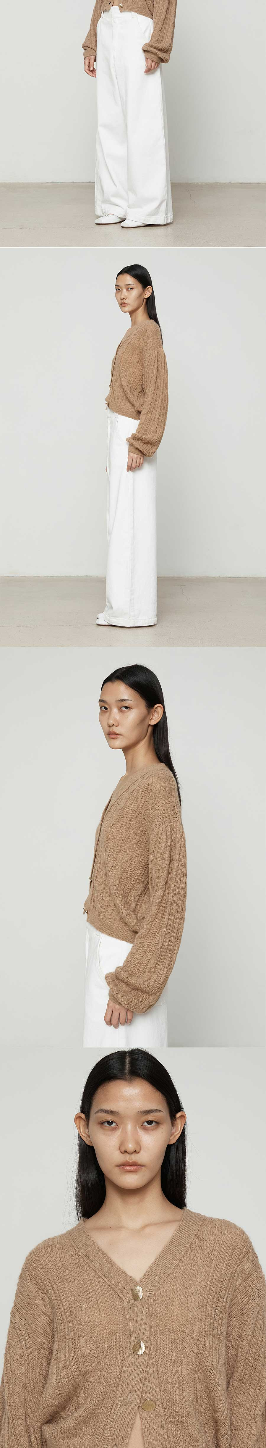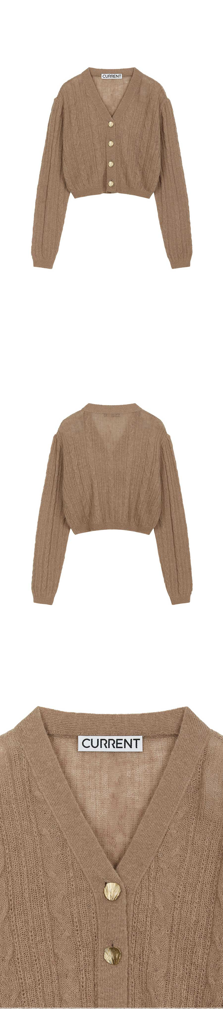 커렌트 퍼프 슬리브 케이블 가디건 오렌지