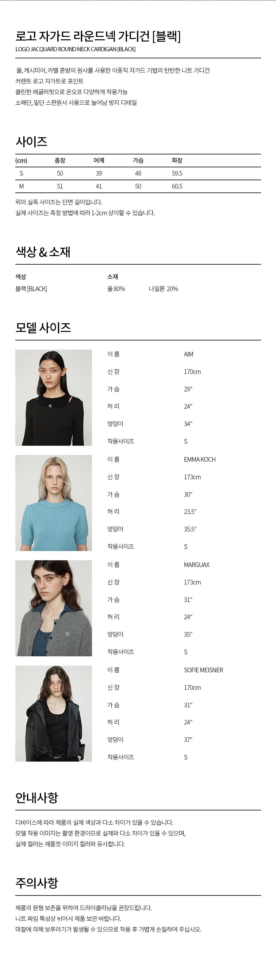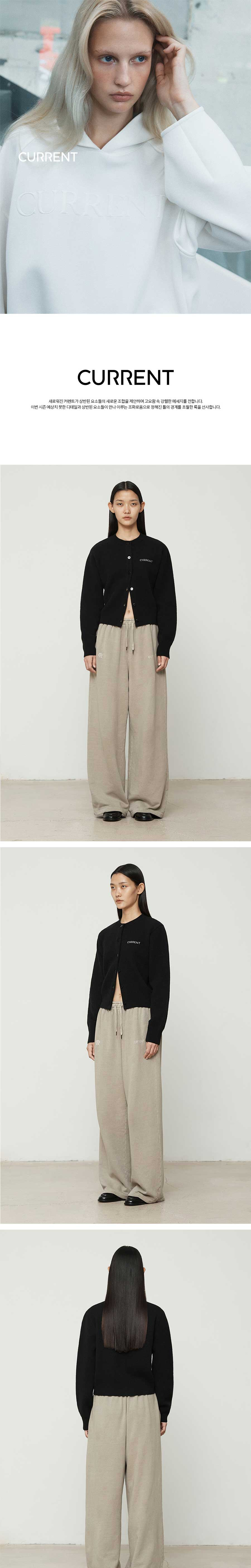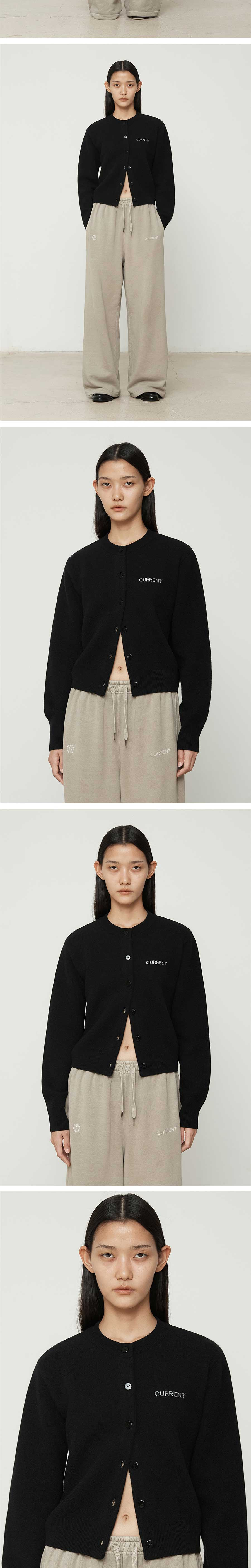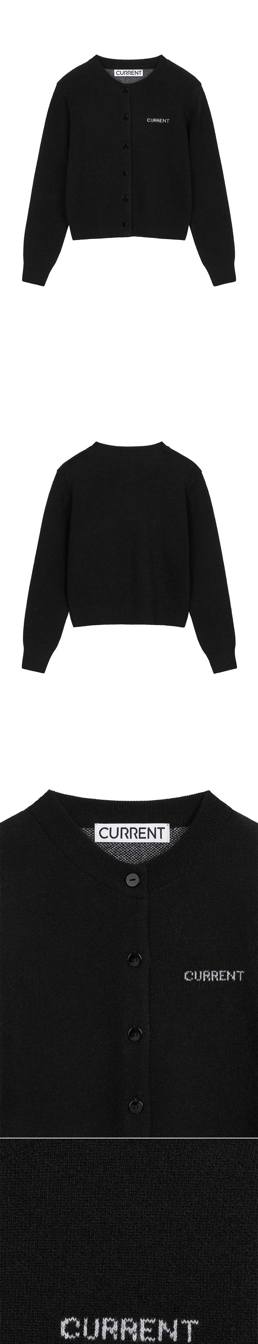 커렌트 로고 자가드 라운드넥 가디건 블랙
