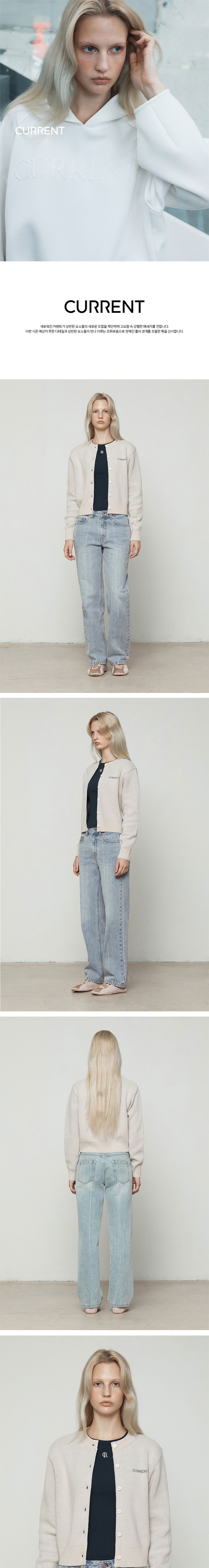 커렌트 로고 자가드 라운드넥 가디건 크림