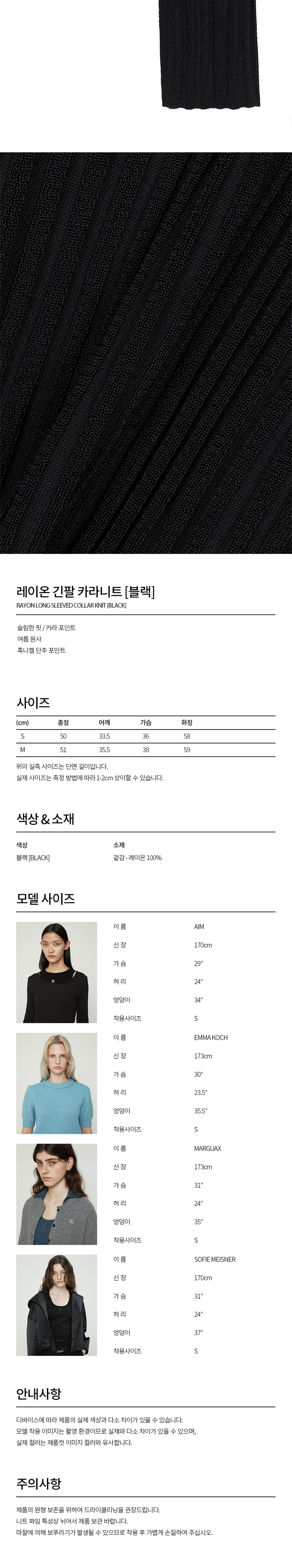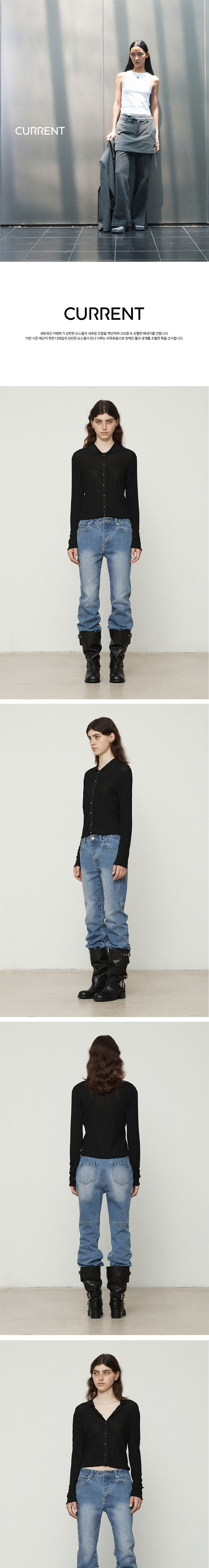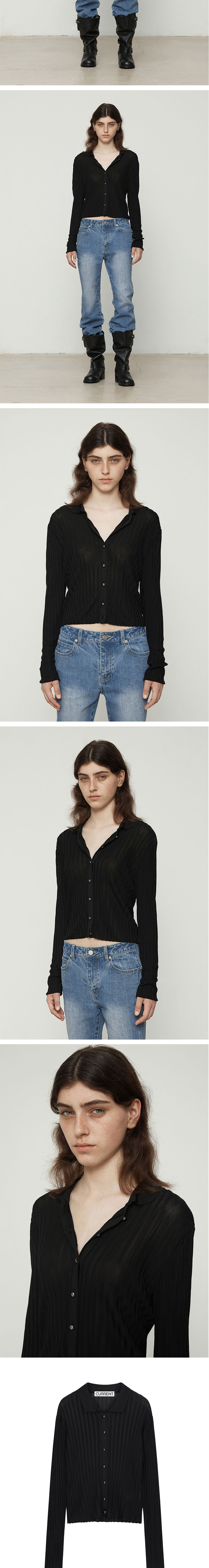 커렌트 레이온 긴팔 카라니트 블랙