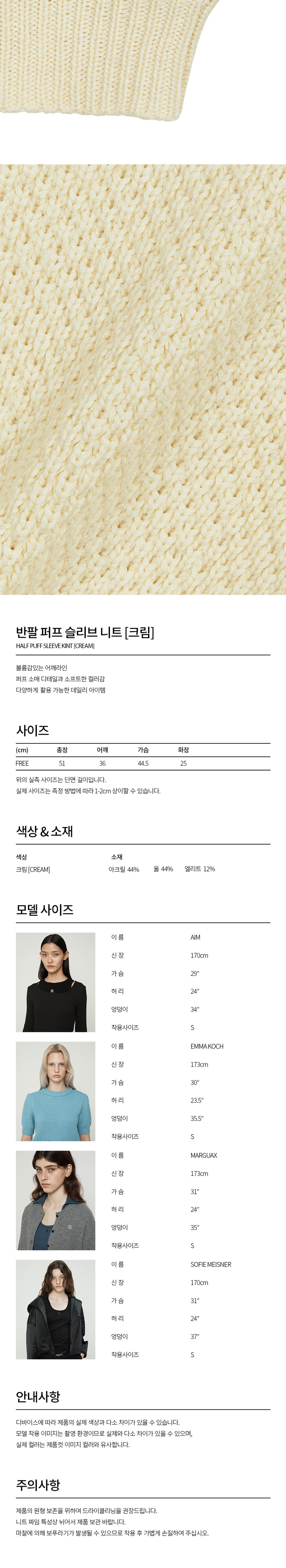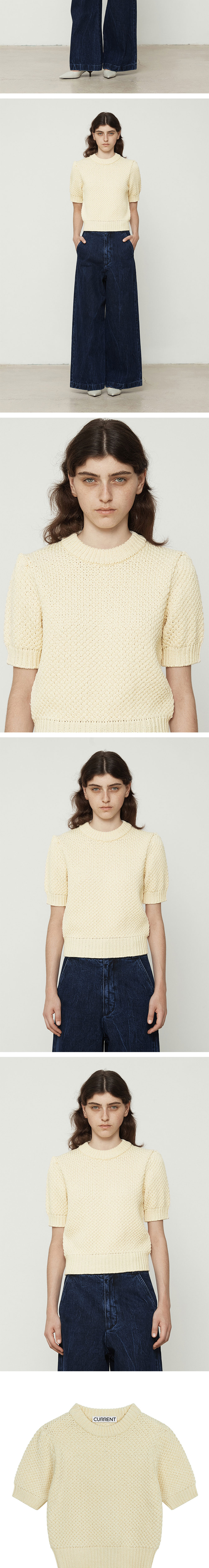 커렌트 하프 퍼프 슬리브 니트 크림